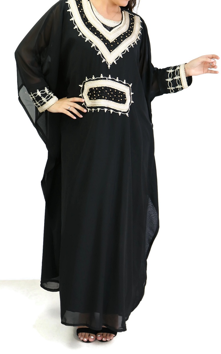 Robe longue avec broderies et strass style caftan marocaine pour femme - Couleur Noir - REF. 36132 (29.00 €)