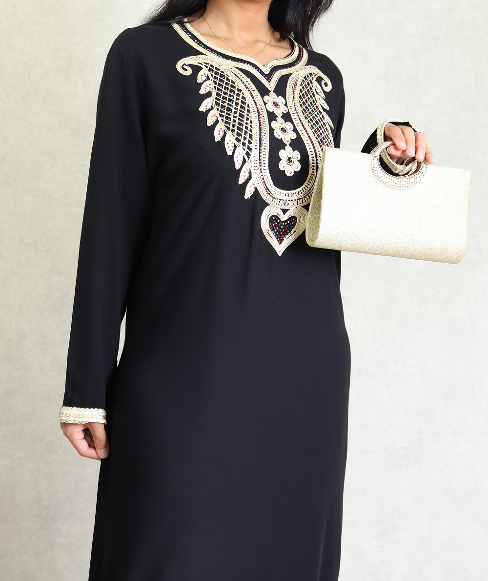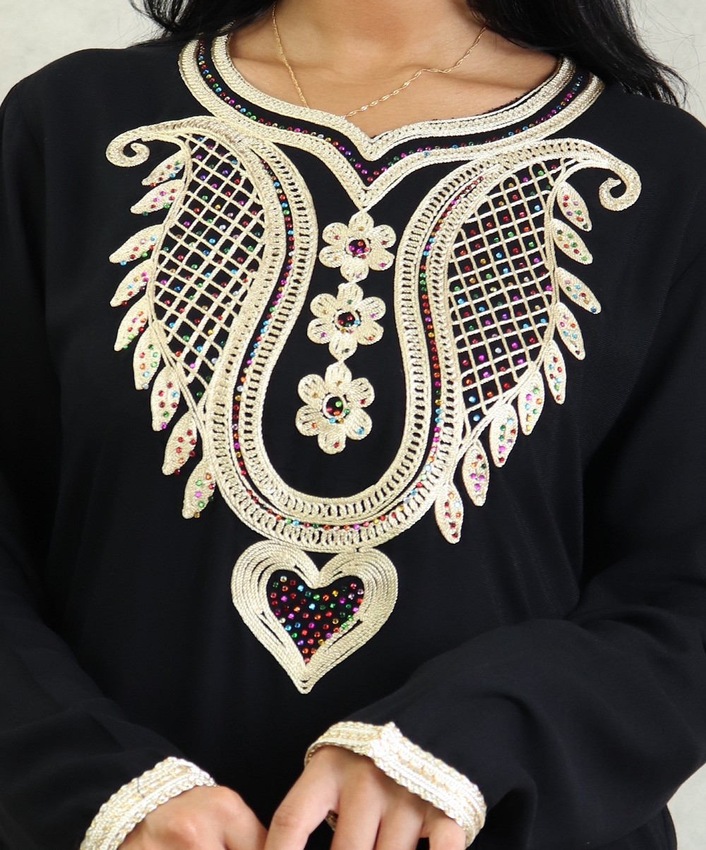 Robe orientale pour femme avec broderies et strass - Couleur Noir Vetement & Accessoire