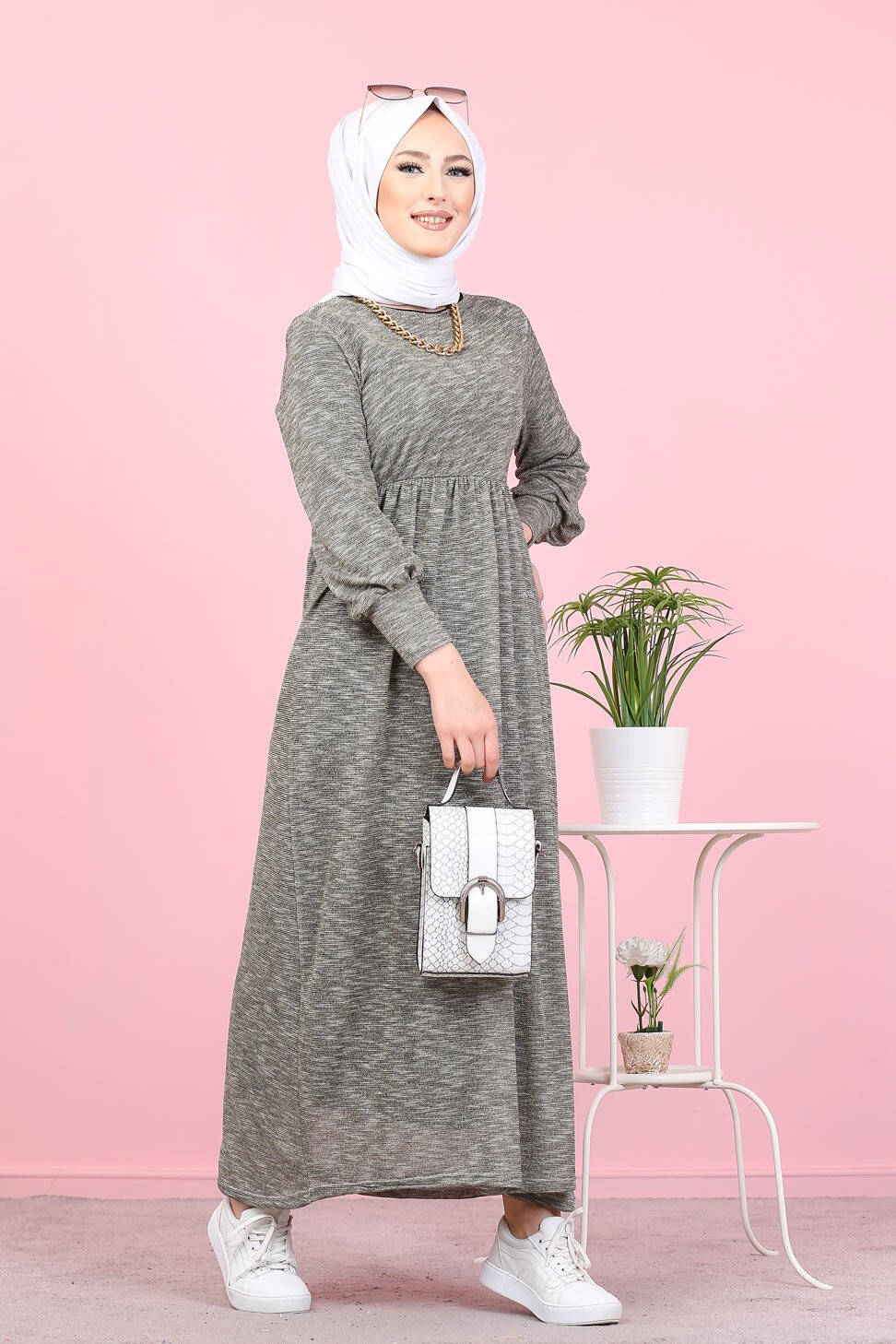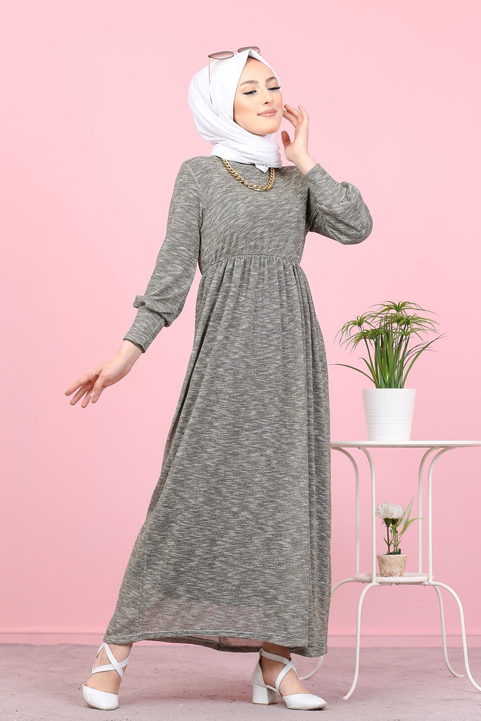 Robe longue à manches longues sobre et chic - Couleur Vert kaki - REF. 31849 (24.90 €)