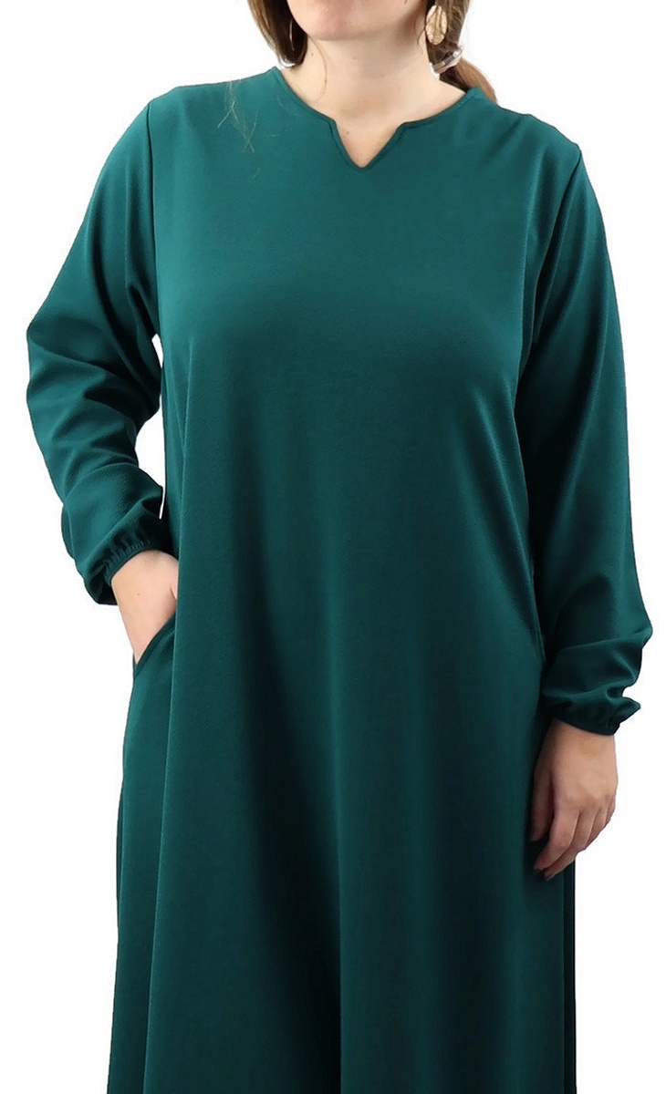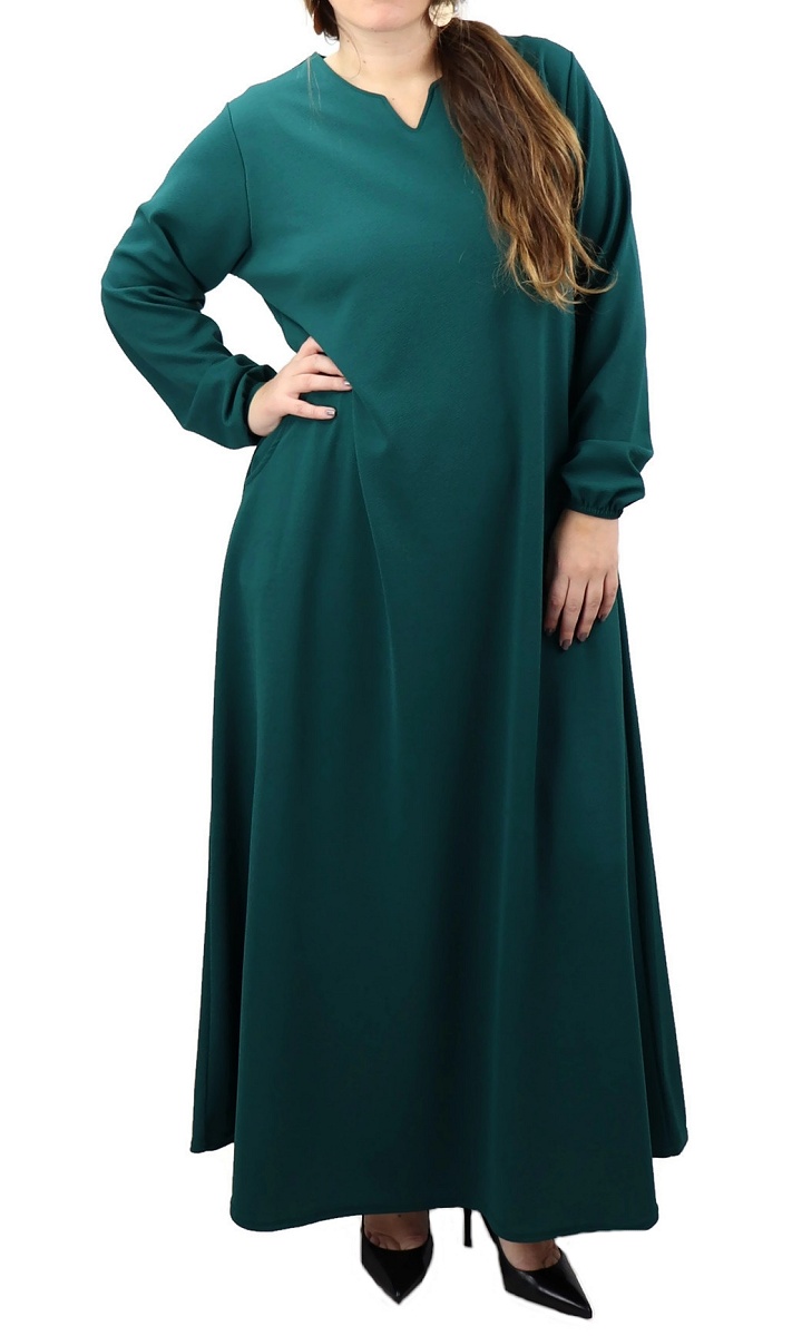 Robe simple longue et large evasee (grande taille) pour femme - Couleur Vert fonce