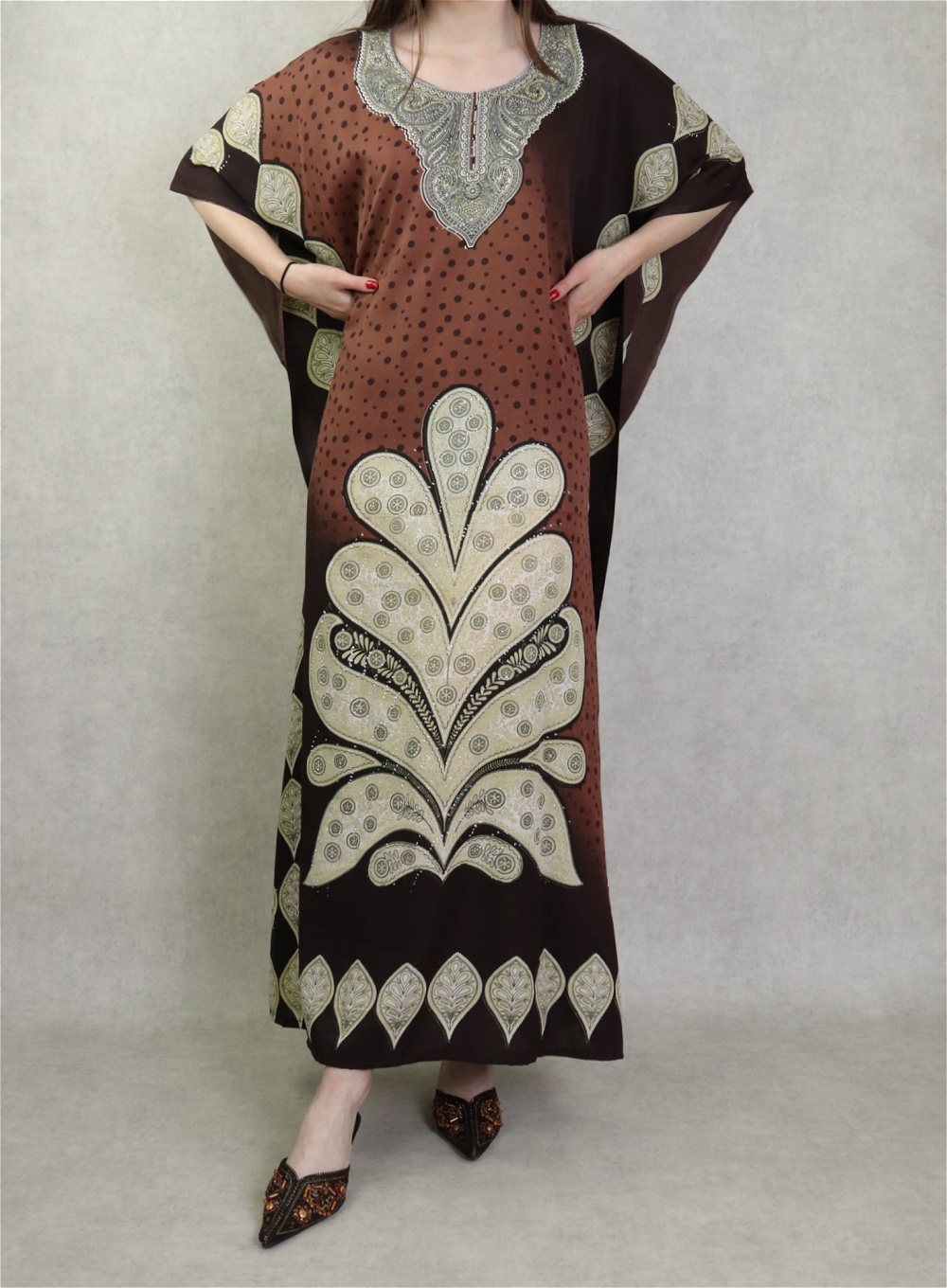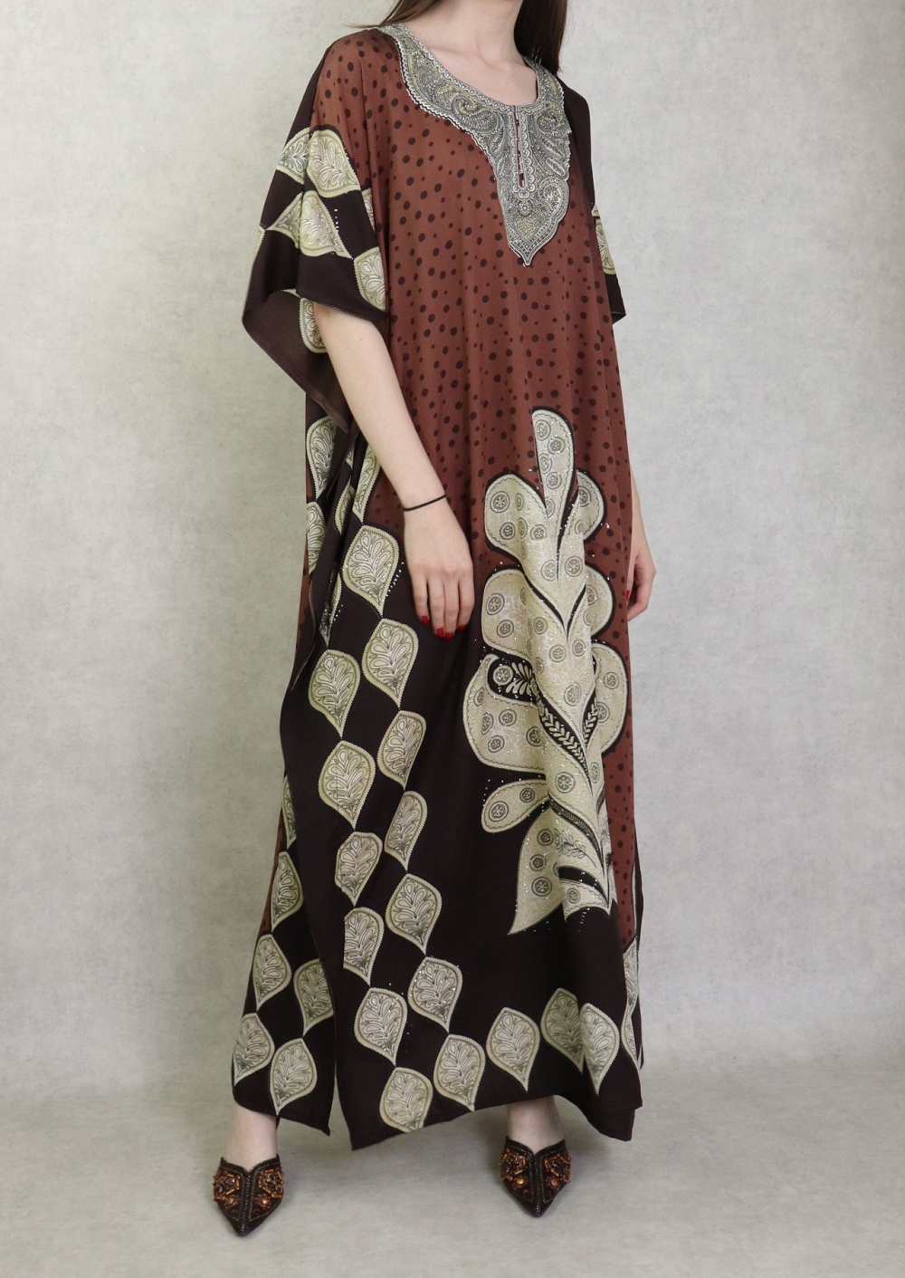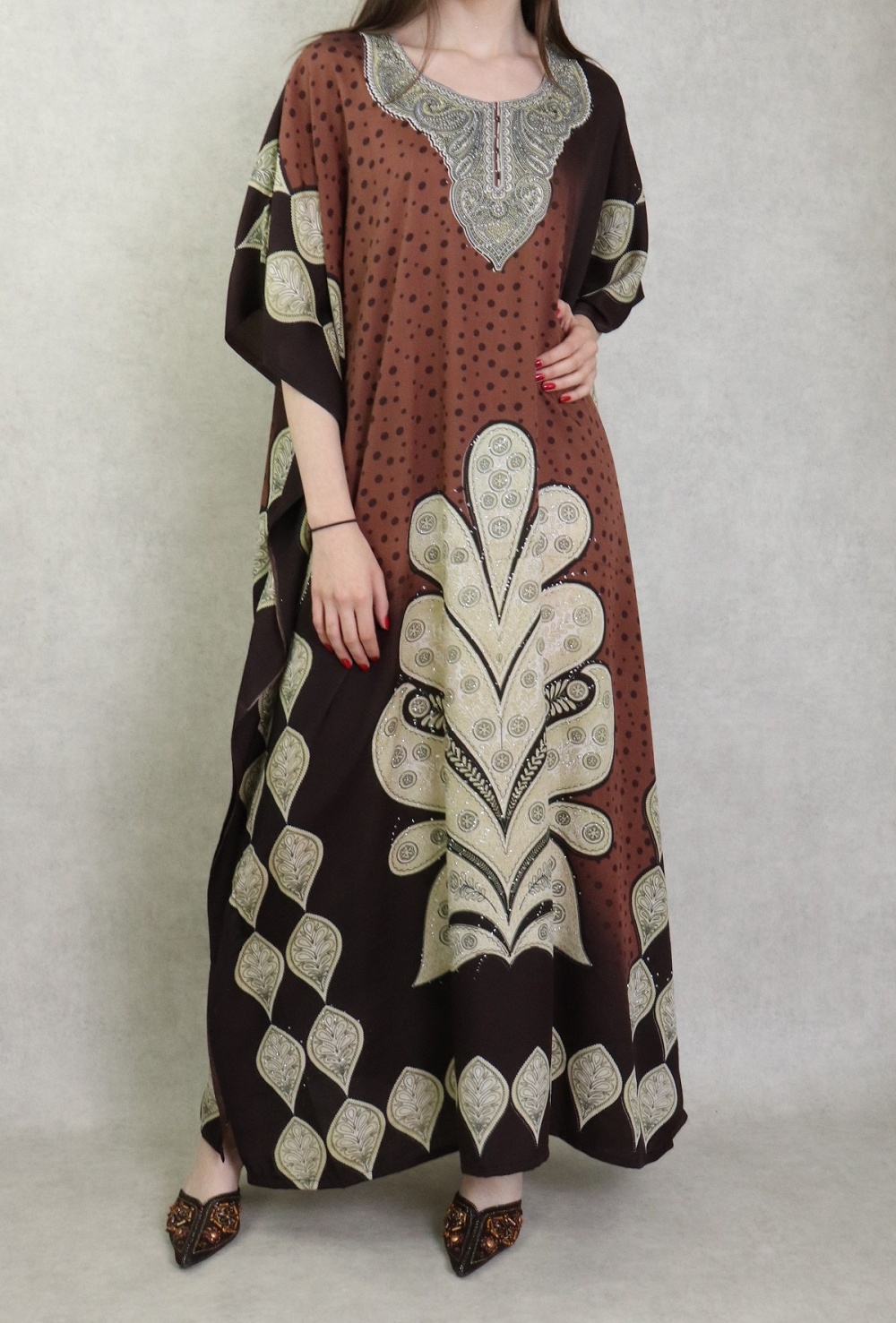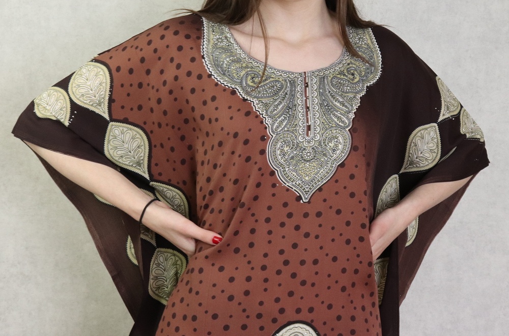 Robe style oriental extra-large et confortable pour la maison et l'ete (Robes pas cher grande taille pour femme) - Couleur marron