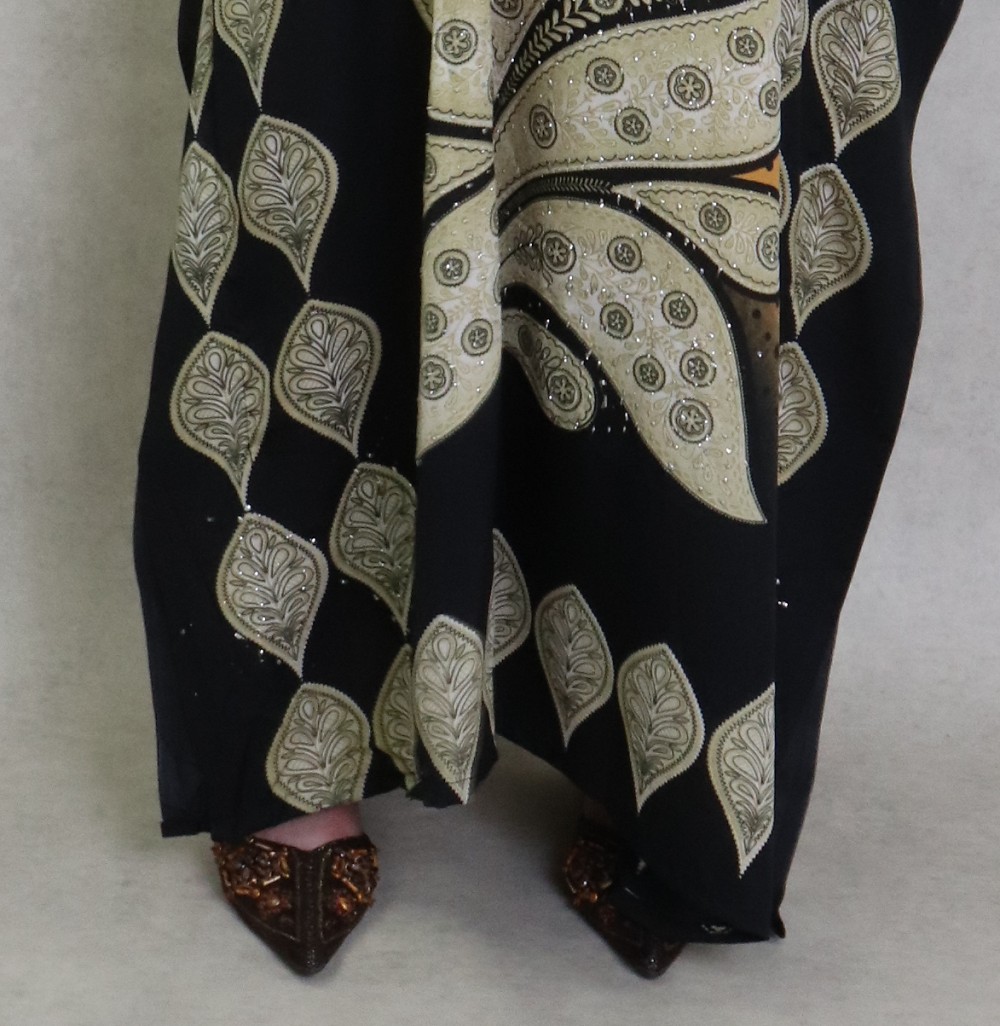 Robe style oriental pour la maison et l'été (Robes extra-large et grande taille pour femme) - Couleur motifs Noir