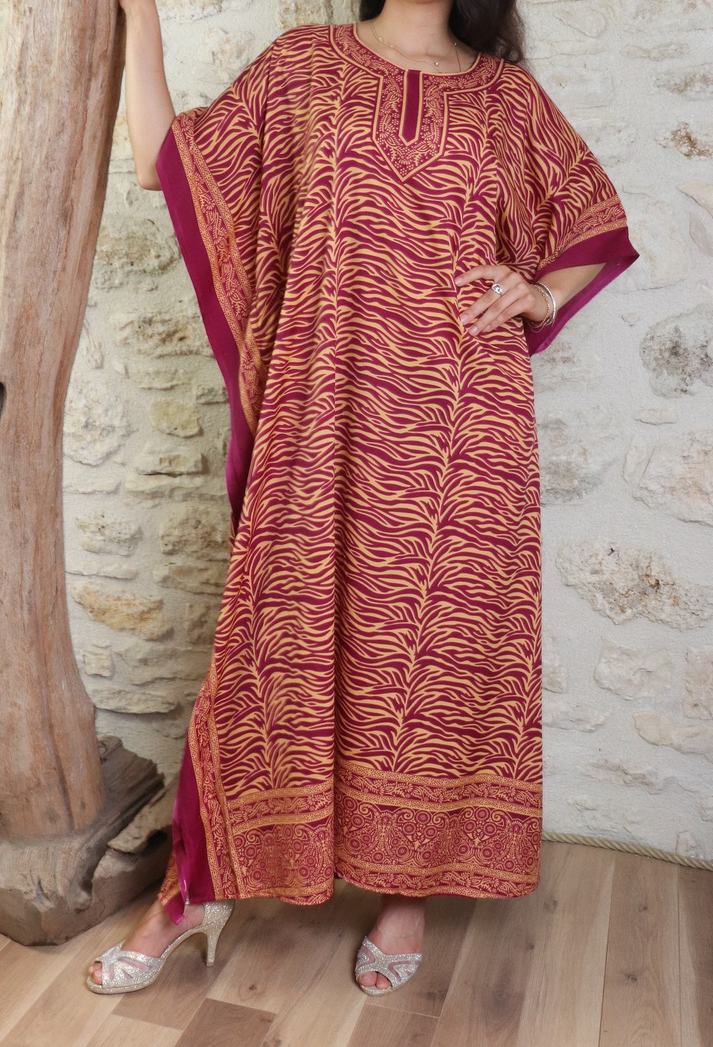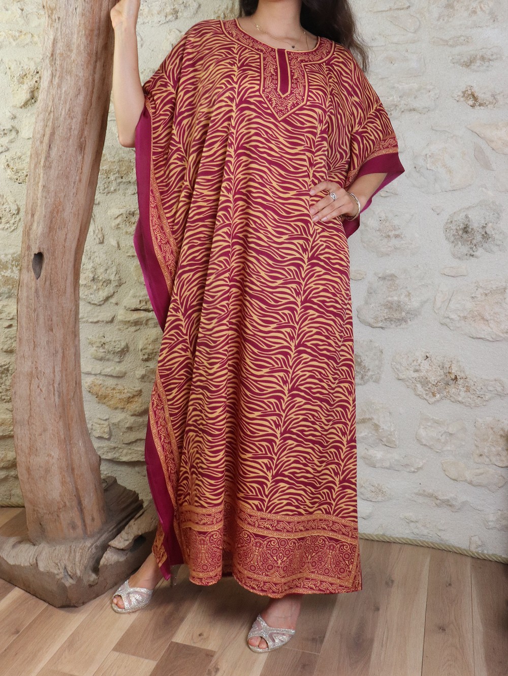 Robe style oriental pour la maison et l'ete (Robes extra-large et grande taille pour femme) - Couleur Motifs Bordeaux