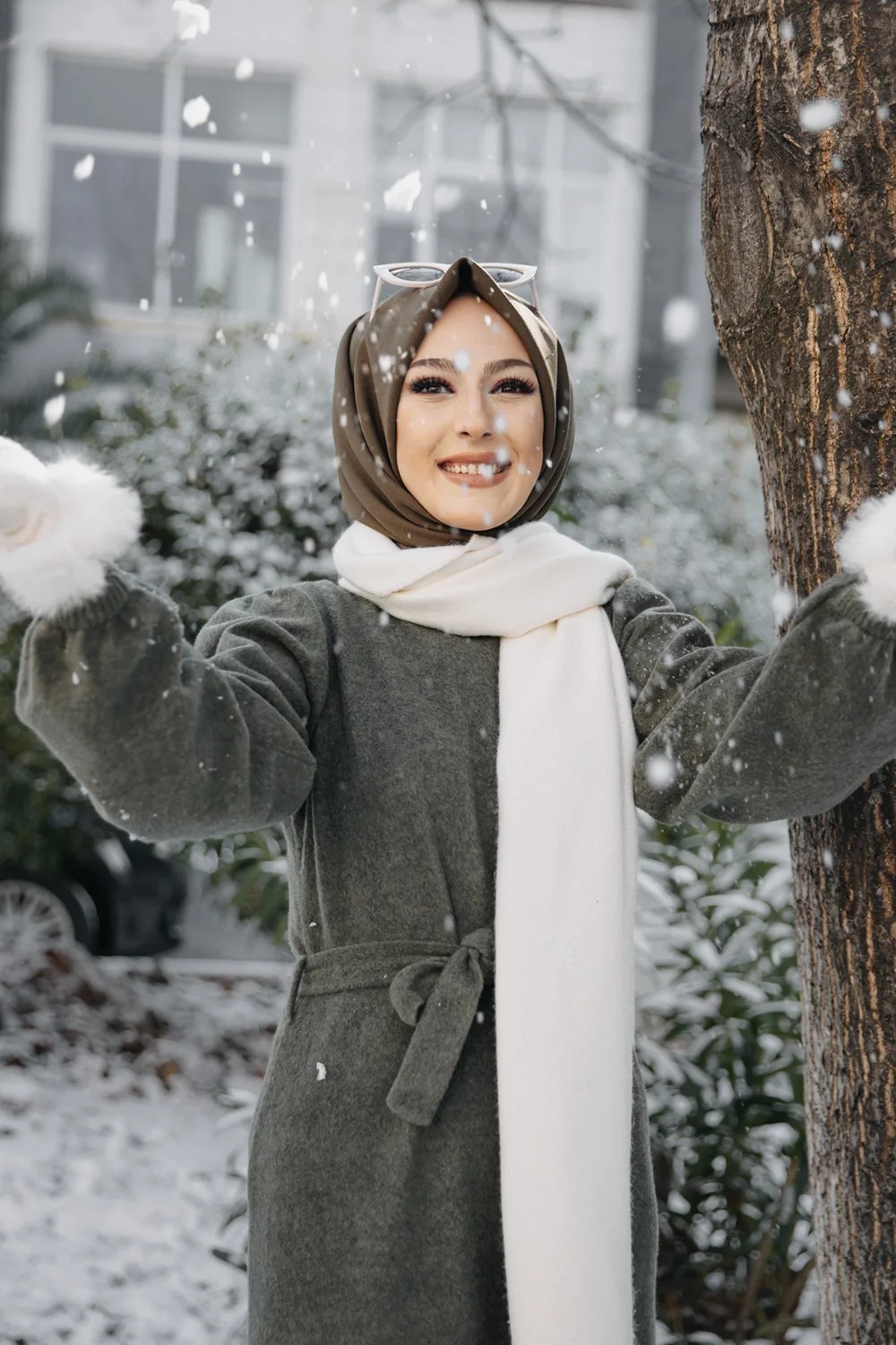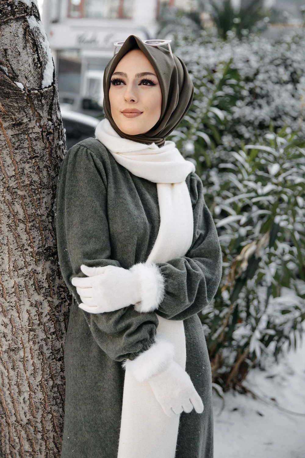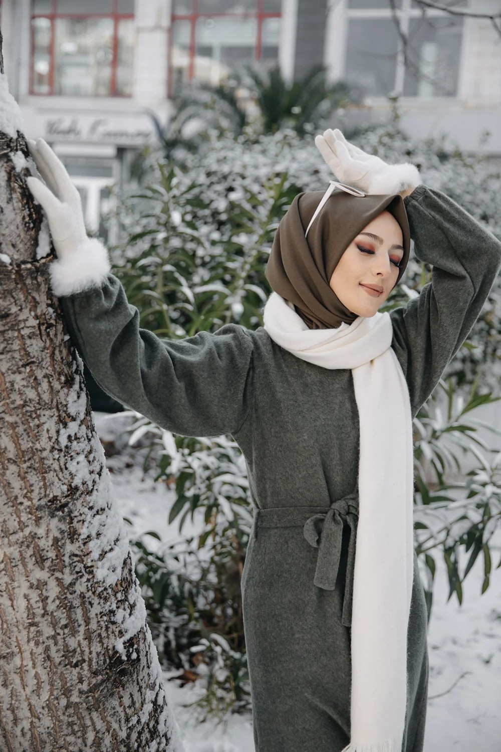 Robe tissu polaire avec ceinture (Vêtement Hijab Saison Automne-Hiver) - Couleur kaki Vetement & Accessoire