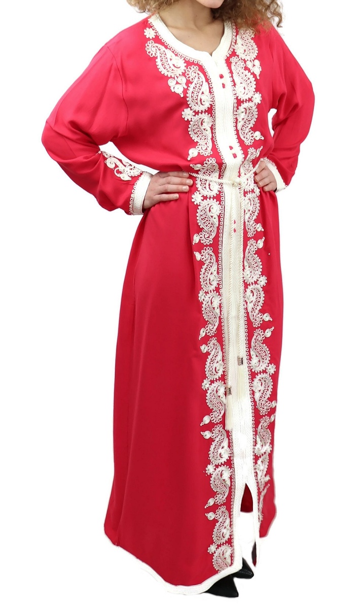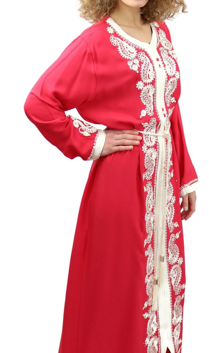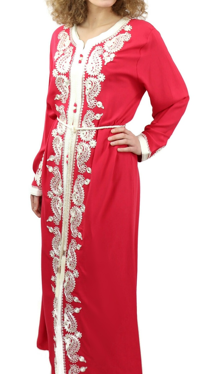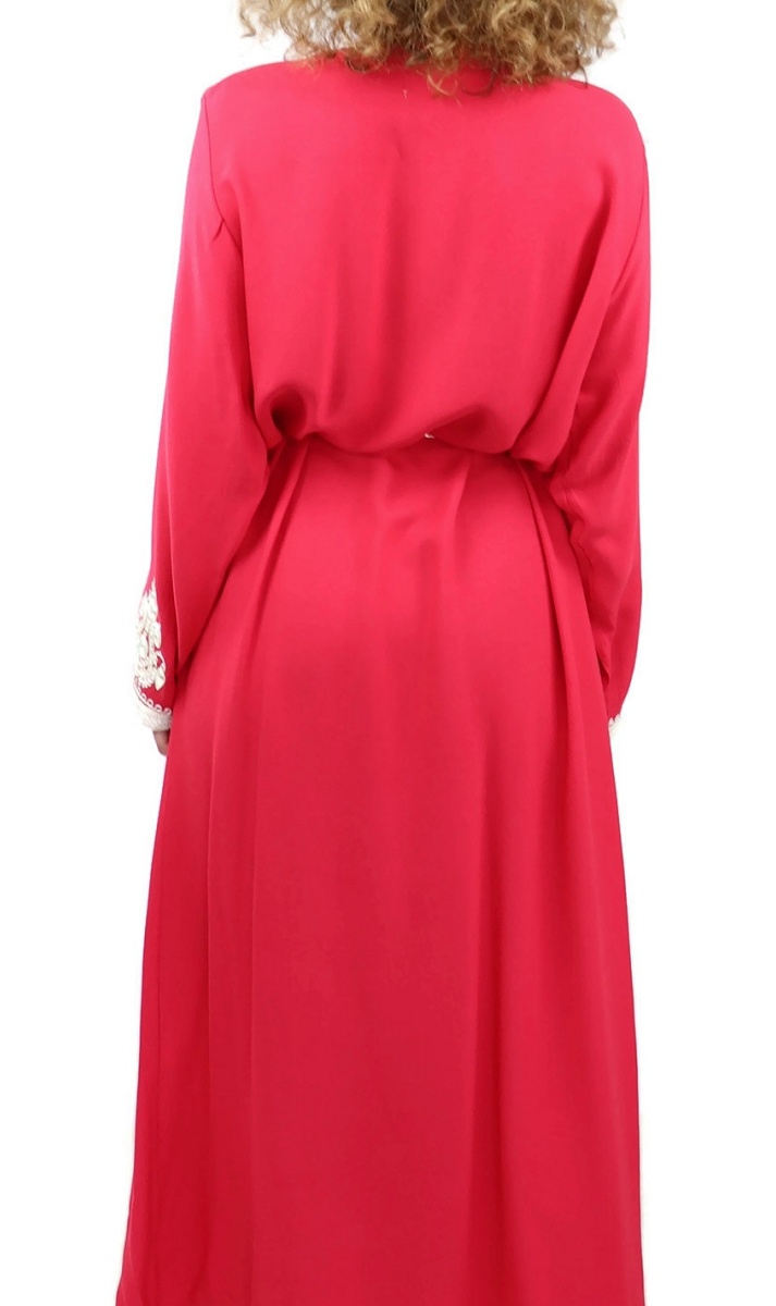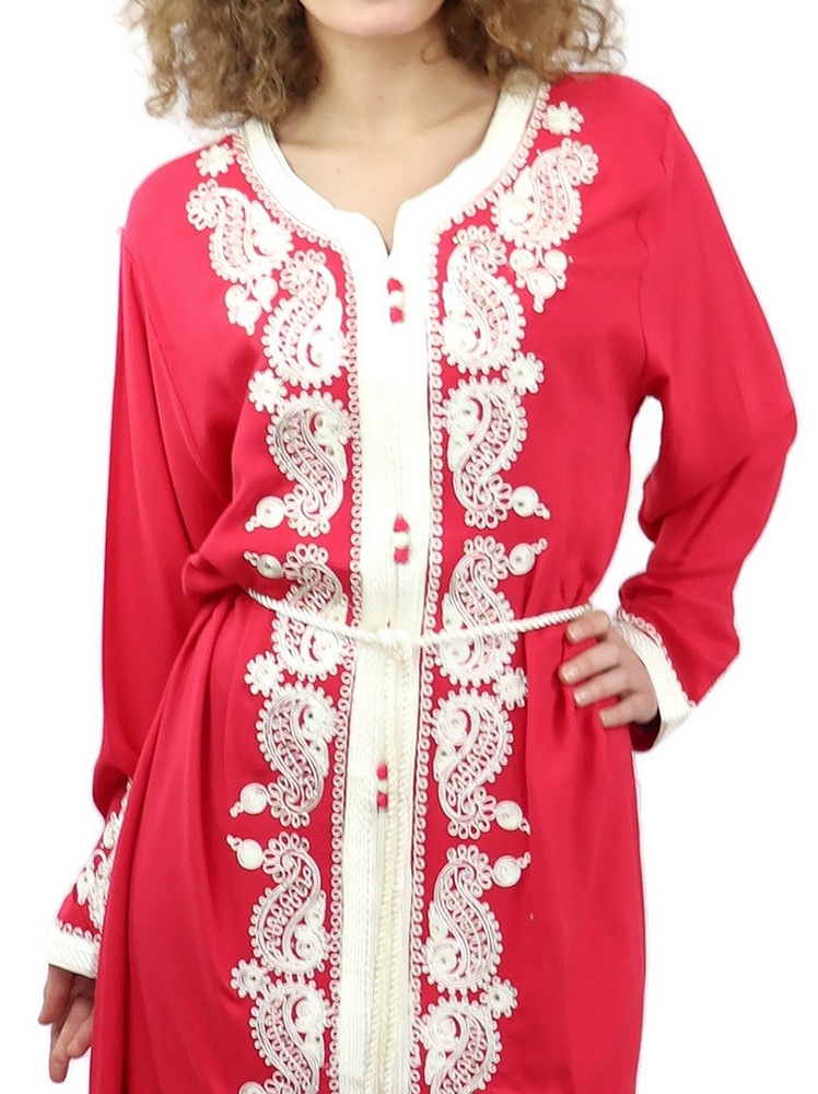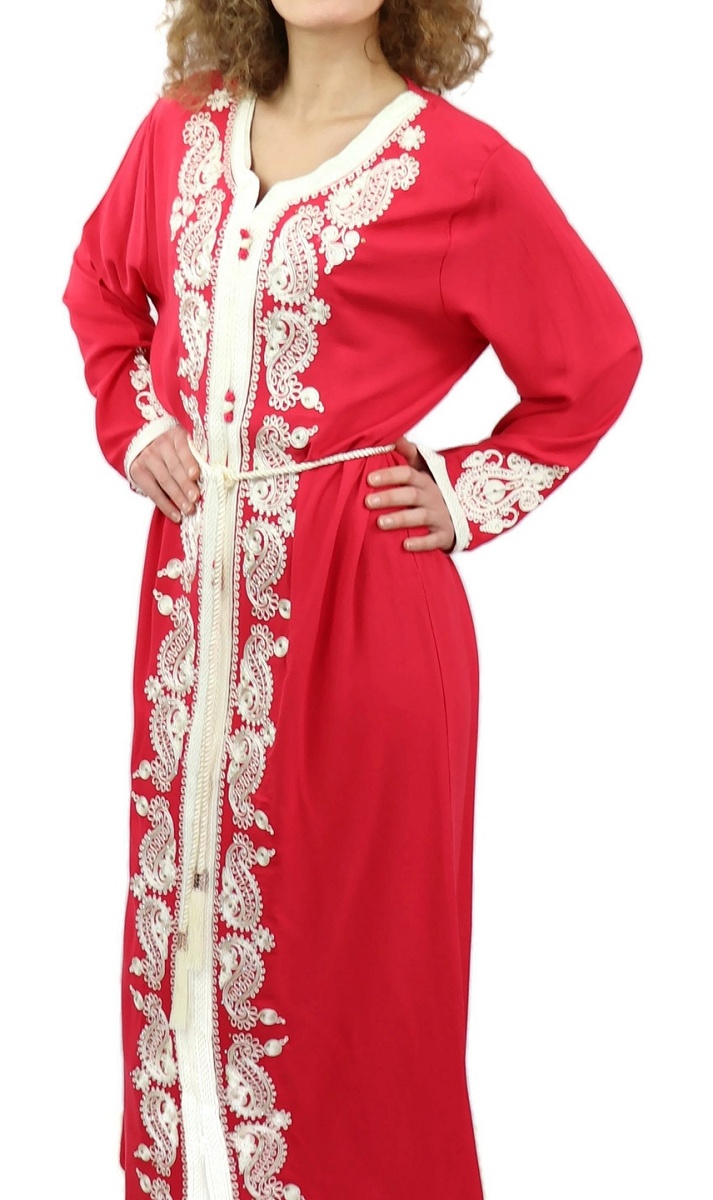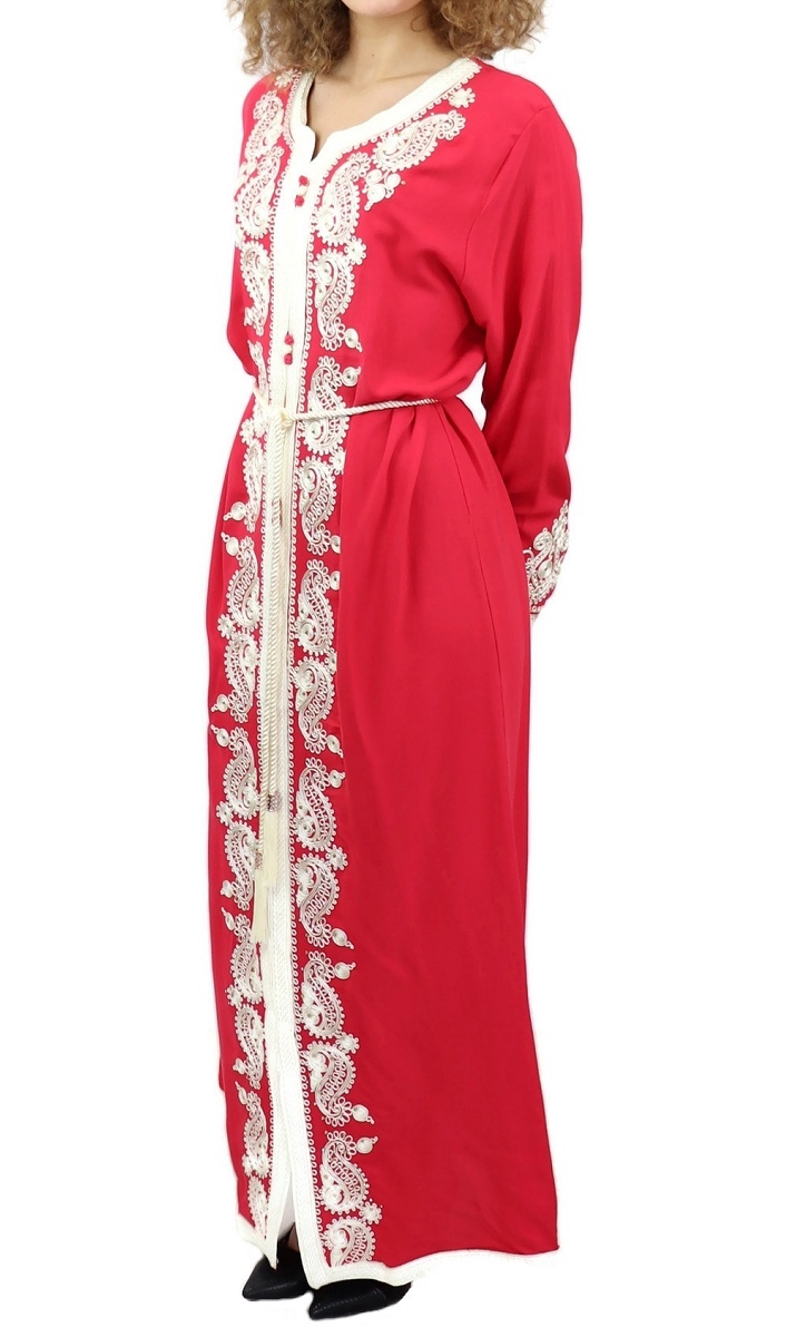 Robe traditionnelle marocaine avec ceinture pour femme - Couleur rouge coquelicot Vetement & Accessoire