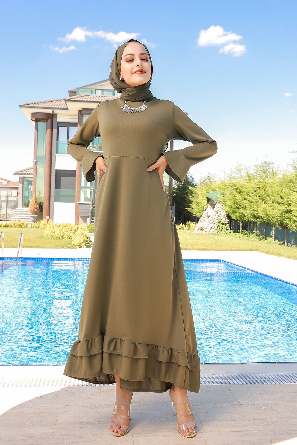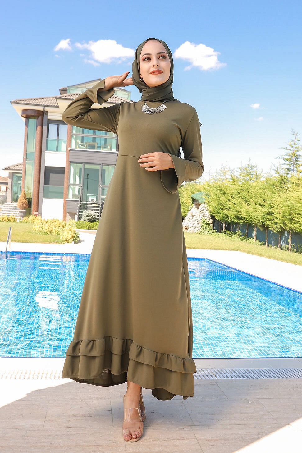 Robe très longue à volants (Abayas et vetements pour femmes voilées) - Couleur Kaki Vetement & Accessoire