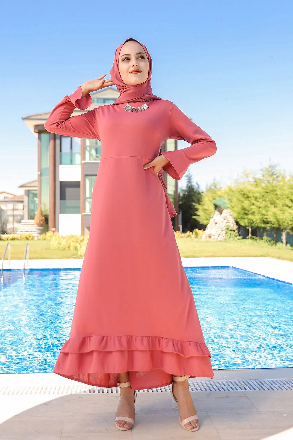 Robe tres longue a volants (Abayas et vetements pour femmes voilees) - Couleur Rose