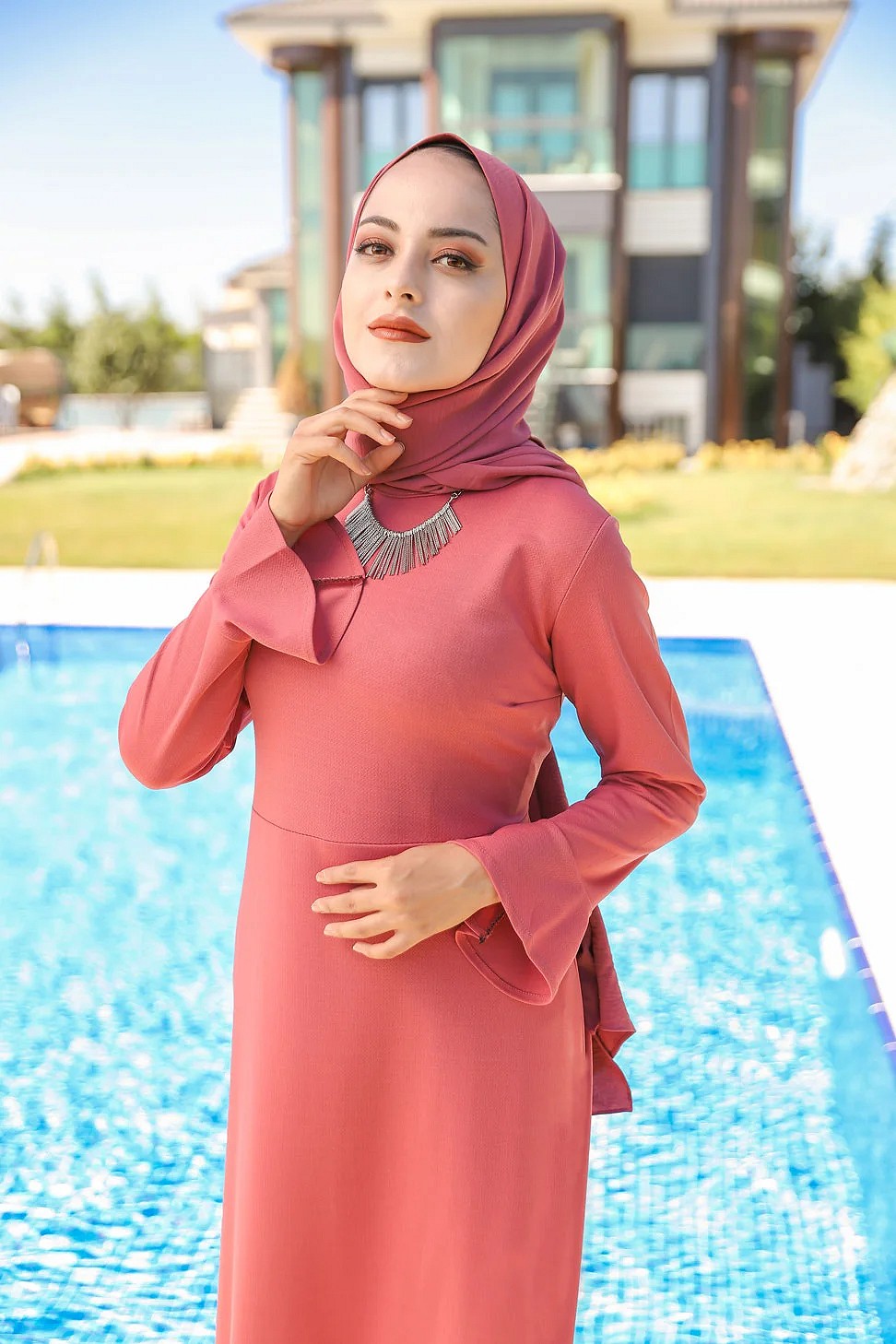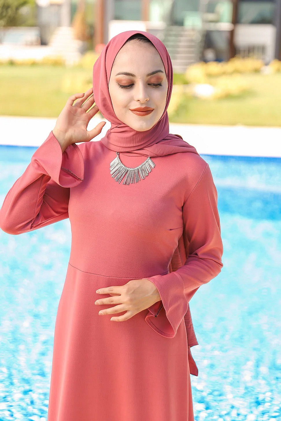 Robe longue en crêpe (Robes pour femmes voilées - Nouveautés) - Couleur brique - REF. 35934 (24.90 €)
