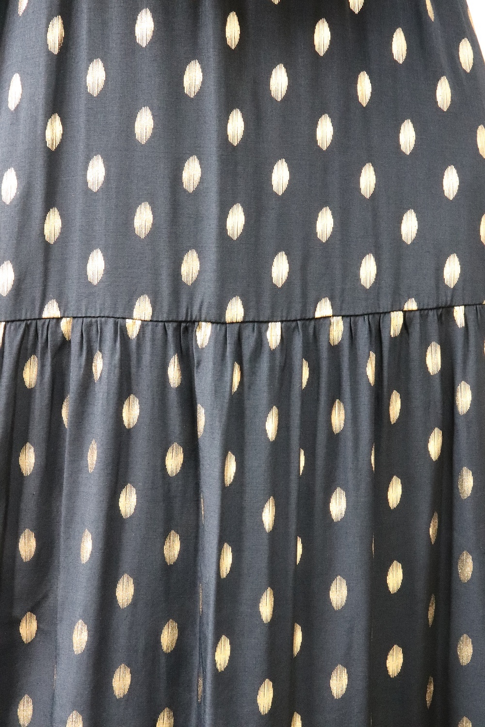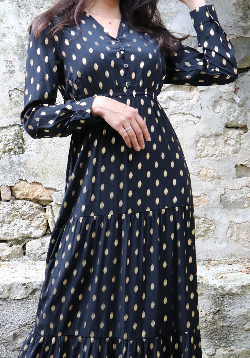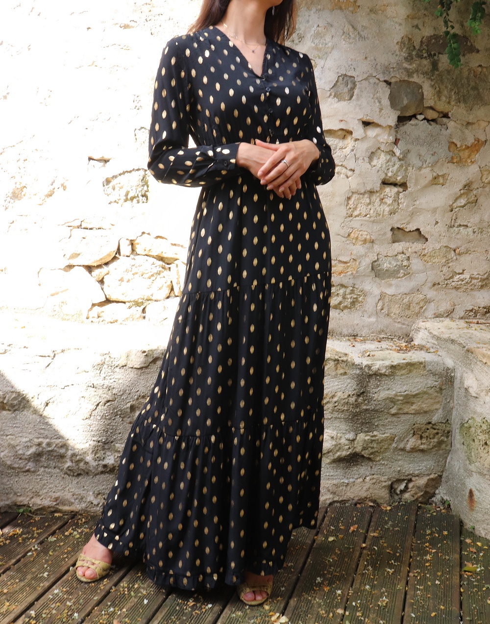 Robe très longue à volants pour femme - Couleur Noir avec motifs dorés Vetement & Accessoire