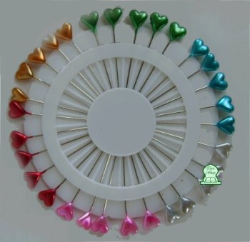 Roue avec 30 grandes épingles (5cm) avec têtes en forme de cœurs.