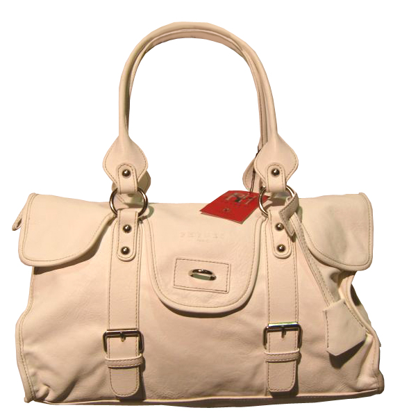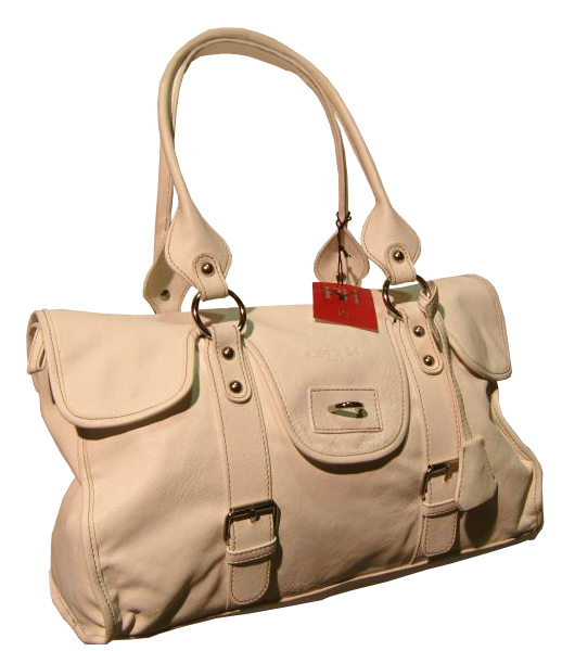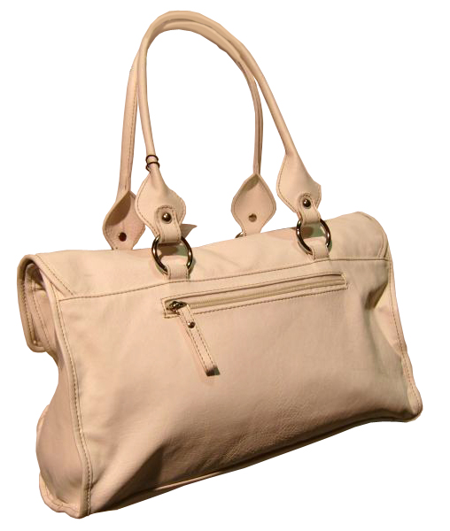 Sac à main blanc imitation cuir souple et épais. Fermeture par pression aimantée (3 aimants).
