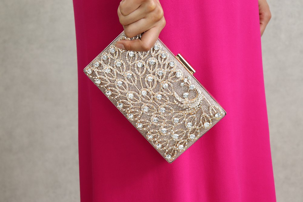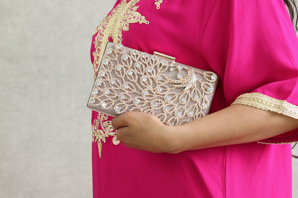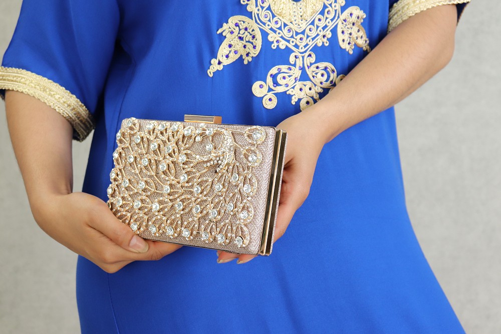 Sac à main femme entièrement recouvert de strass, anse métallique ronde pour soirée, mariage et fête - Couleur Champagne - REF. 32596 (25.00 €)