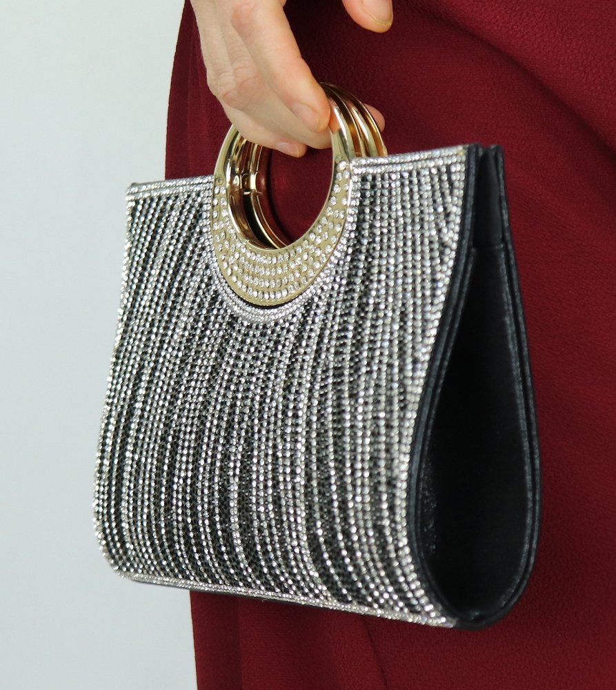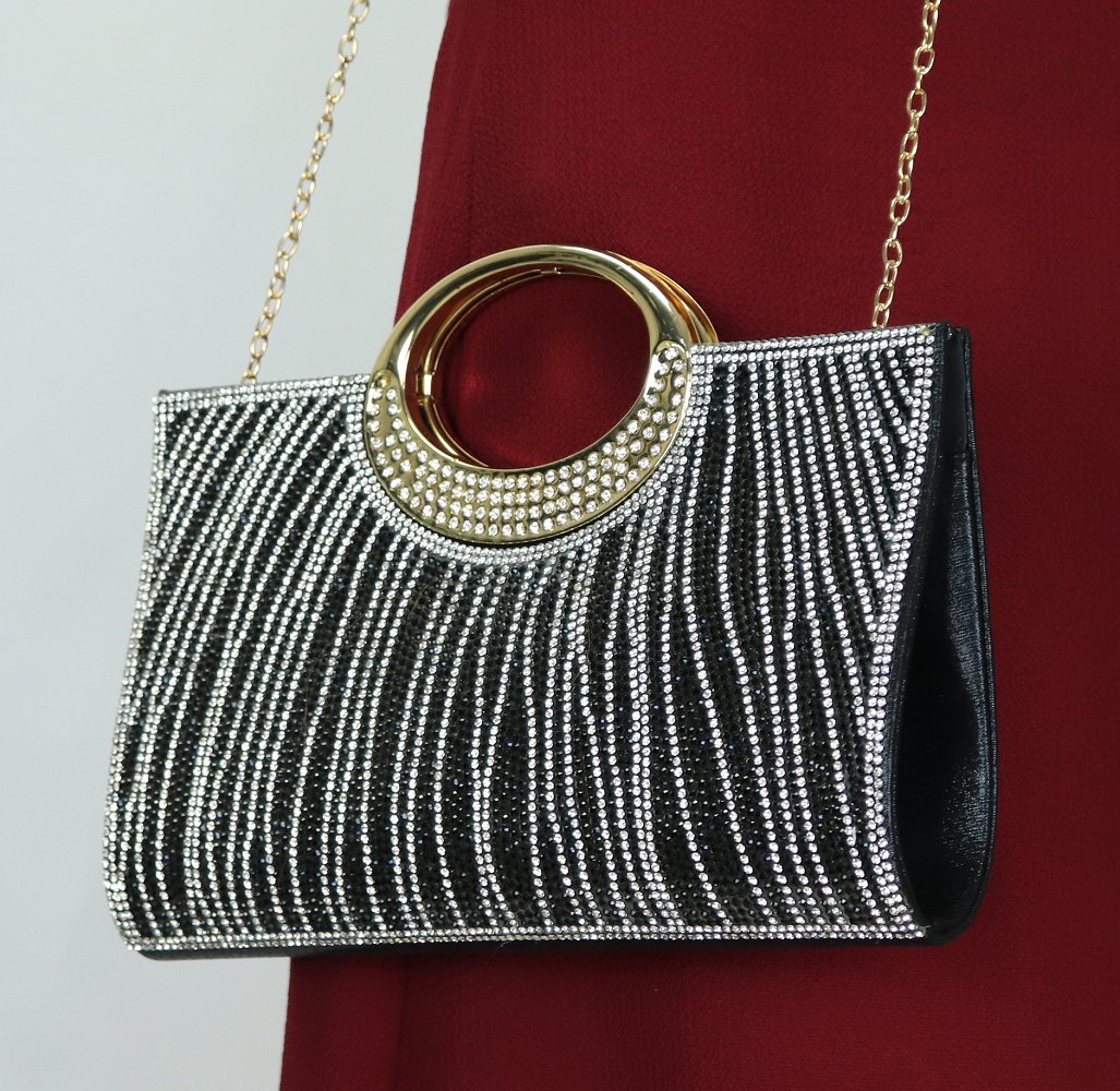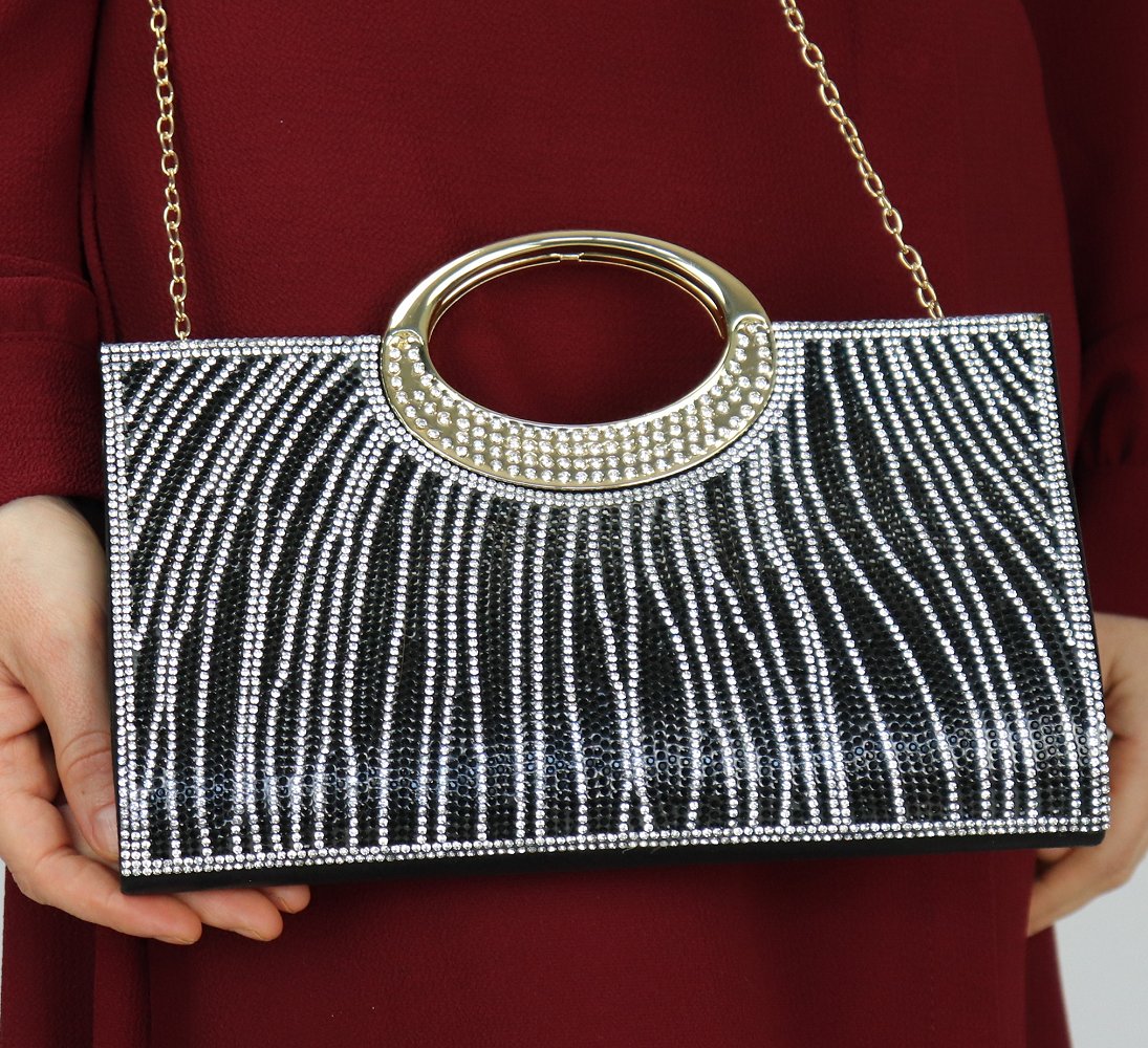Sac à main de soirée - Pochette poignet métallique femme strass bandoulière chaîne démontable - Noir Vetement & Accessoire