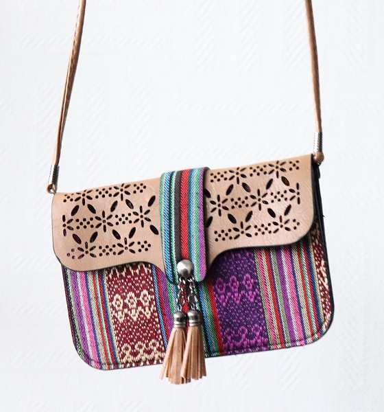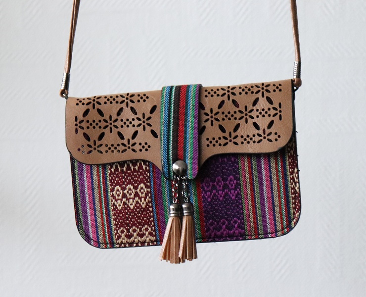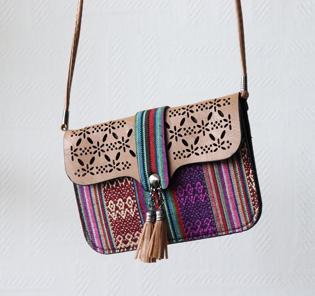 Ensemble sac ethnique, étole et sacoche en tissu de sabra marocain aux couleurs chatoyantes - REF. 16912 (49.00 €)