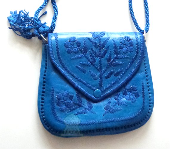 Très joli sac en cuir artisanal marocain, de taille grande, entièrement réalisé en peau d’agneau tanné et muni d’une cordelette en soie, que vous pouvez porter en pochette ou à l’épaule et qui sera idéal pour vos sorties, ou même à utiliser quotidiennement.