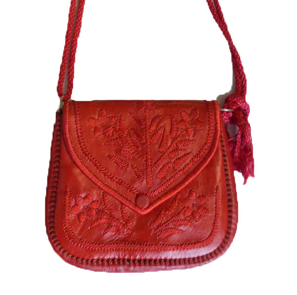 Très joli sac en cuir artisanal marocain, de moyenne taille, entièrement réalisé en peau d’agneau tanné ; ce sac peut être fermé grâce à un bouton pression et est muni d’une cordelette en soie, que vous pouvez porter en pochette ou à l’épaule et qui sera idéal pour vos sorties, ou même à utiliser quotidiennement.
