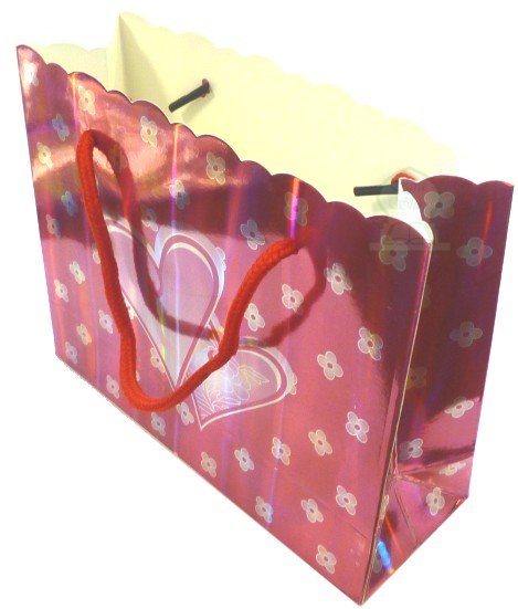 Sac cadeau rouge argenté avec motifs coeurs & fleurs - REF. 12589 (1.00 €)