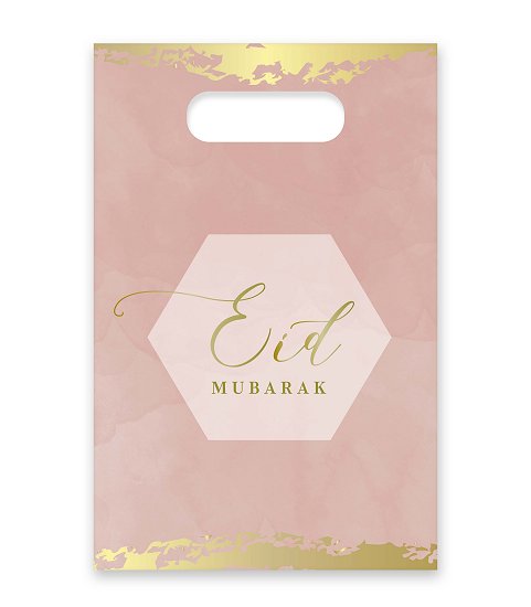 Sac cadeau de luxe en carton Eid Mubarak (fête musulmane de l'Aïd) - Couleur rose doré - REF. 35486 (3.50 €)