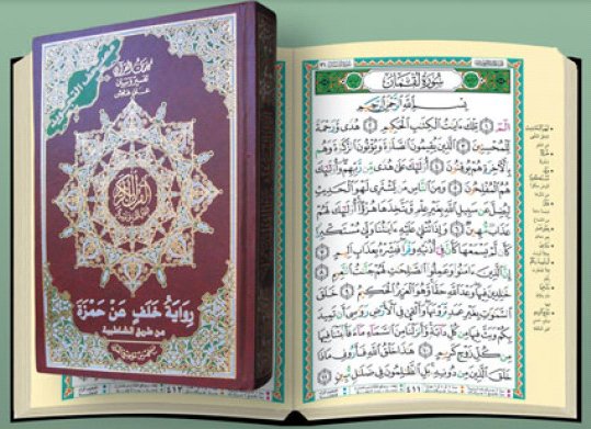 Mushaf Al-Tajweed, “Narration of Khalaf from Hamzah” which it is written and printed for the first time, after being orally, and being kept by hearts only since the age of prophet Muhammad (PBUH) till now. (Al Azhar committee adopted this edition at 18/6/2007)