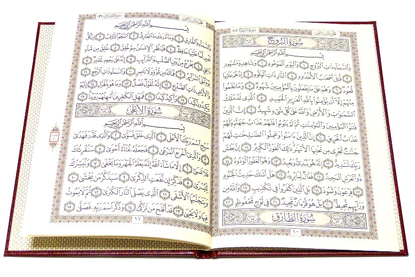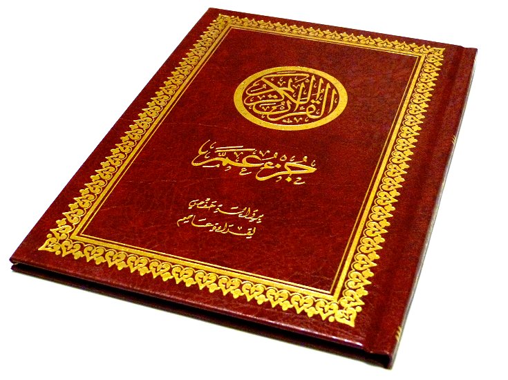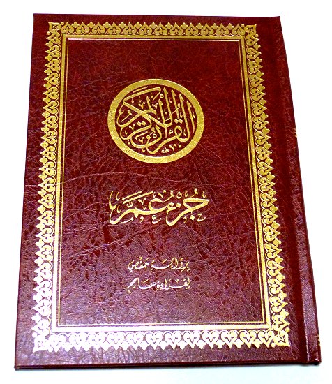 Le Saint Coran partie Amma (Jouz' 'Amma) contenant les dernières sourates du Coran. Impression deux couleurs sur papier chamois.