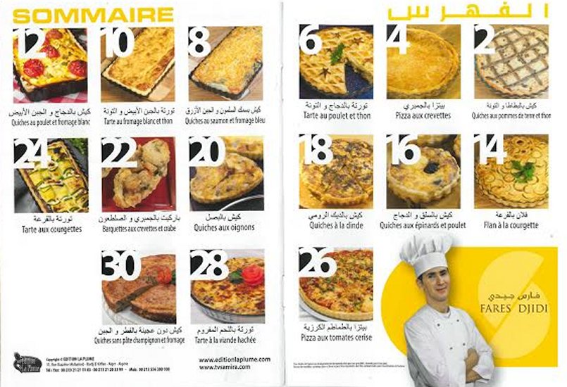 Livre bilingue (français/arabe) à petit prix avec 15 recettes de cuisines illustrées pas à pas.