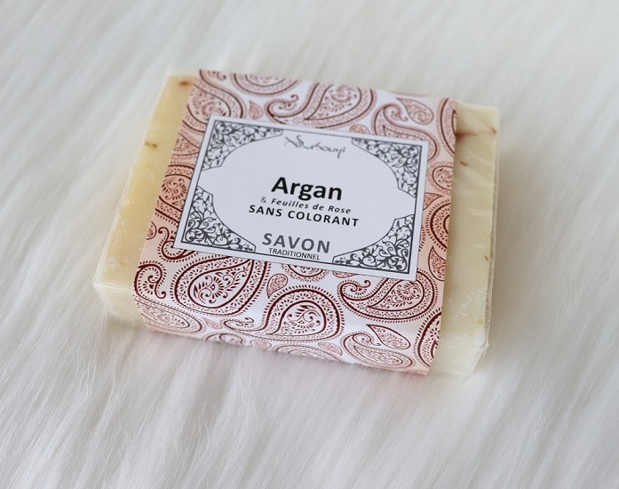 Ce savon exfoliant est recommandé contre les points noirs et l’acné. Il sera l'allié de votre hygiène quotidienne du visage et du corps. L'huile d'Argan rend la peau plus souple en lui apportant vigueur et élasticité, et les pétales de rose parfument agréablement la peau, vous procurant une sensation de douceur et de fraîcheur après chaque lavage.
