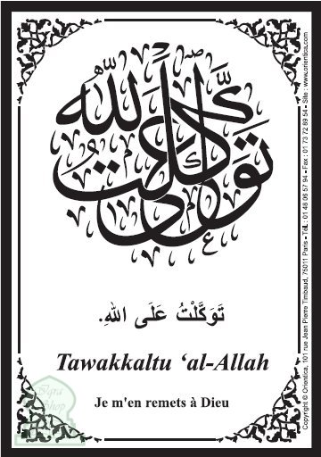Je m'en remets à Dieu / Je place ma confiance en Allah (tawakkaltu 'alal-lâh).