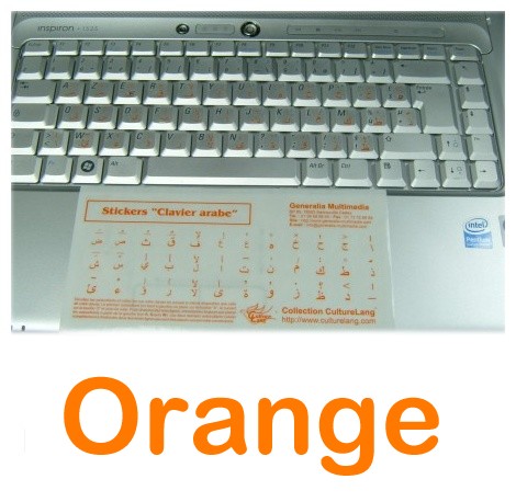 Stickers autocollants transparents pour obtenir un clavier bilingue français/arabe - Couleur orange - REF. 2491 (2.50 €) - En Promotion à 1.90 €