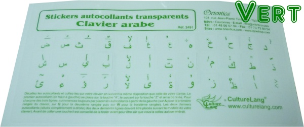 Stickers autocollants transparents pour obtenir un clavier bilingue français/arabe - Couleur vert - REF. 32806 (2.50 €)