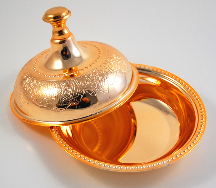 Sucrier, boite à bonbon (Récipient métallique doré avec couvercle) - REF. 24818 (19.90 €)