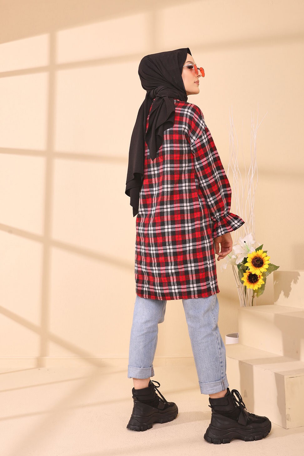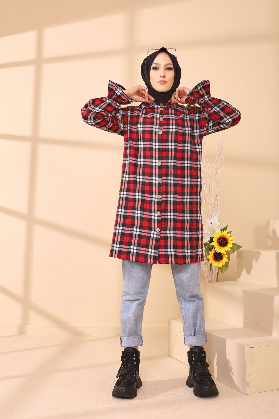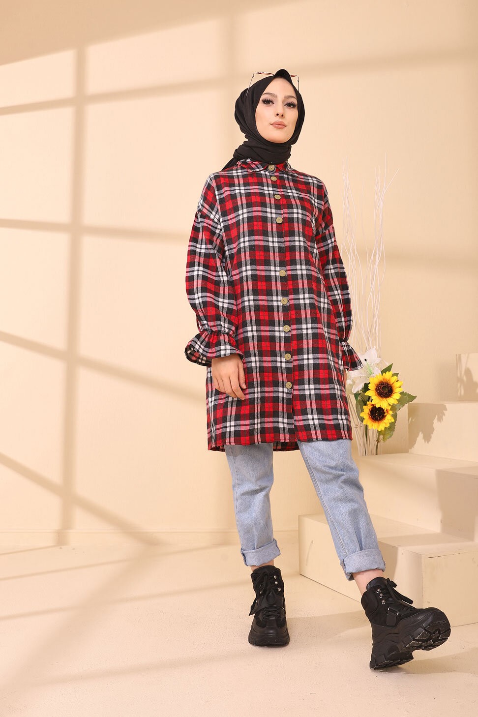 Surchemise ample - Tunique à carreaux (Vêtement Hijab style Musulmane) - Rayures de couleur rouge Vetement & Accessoire