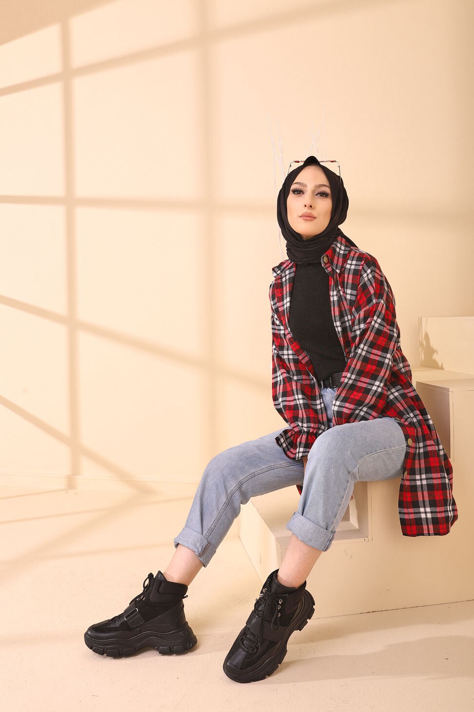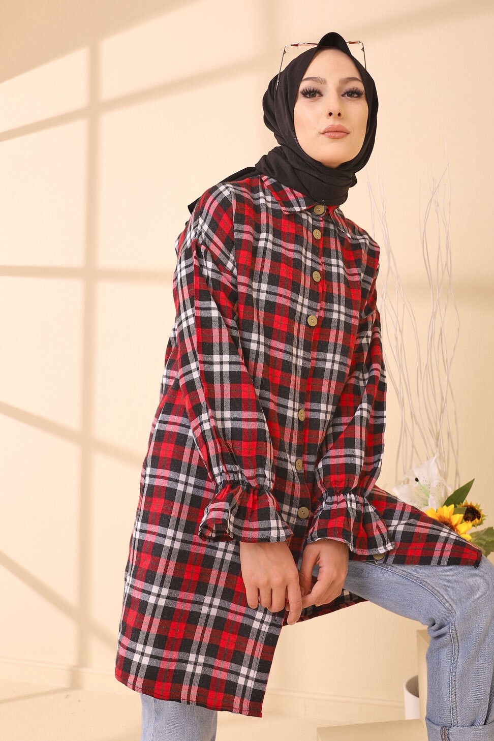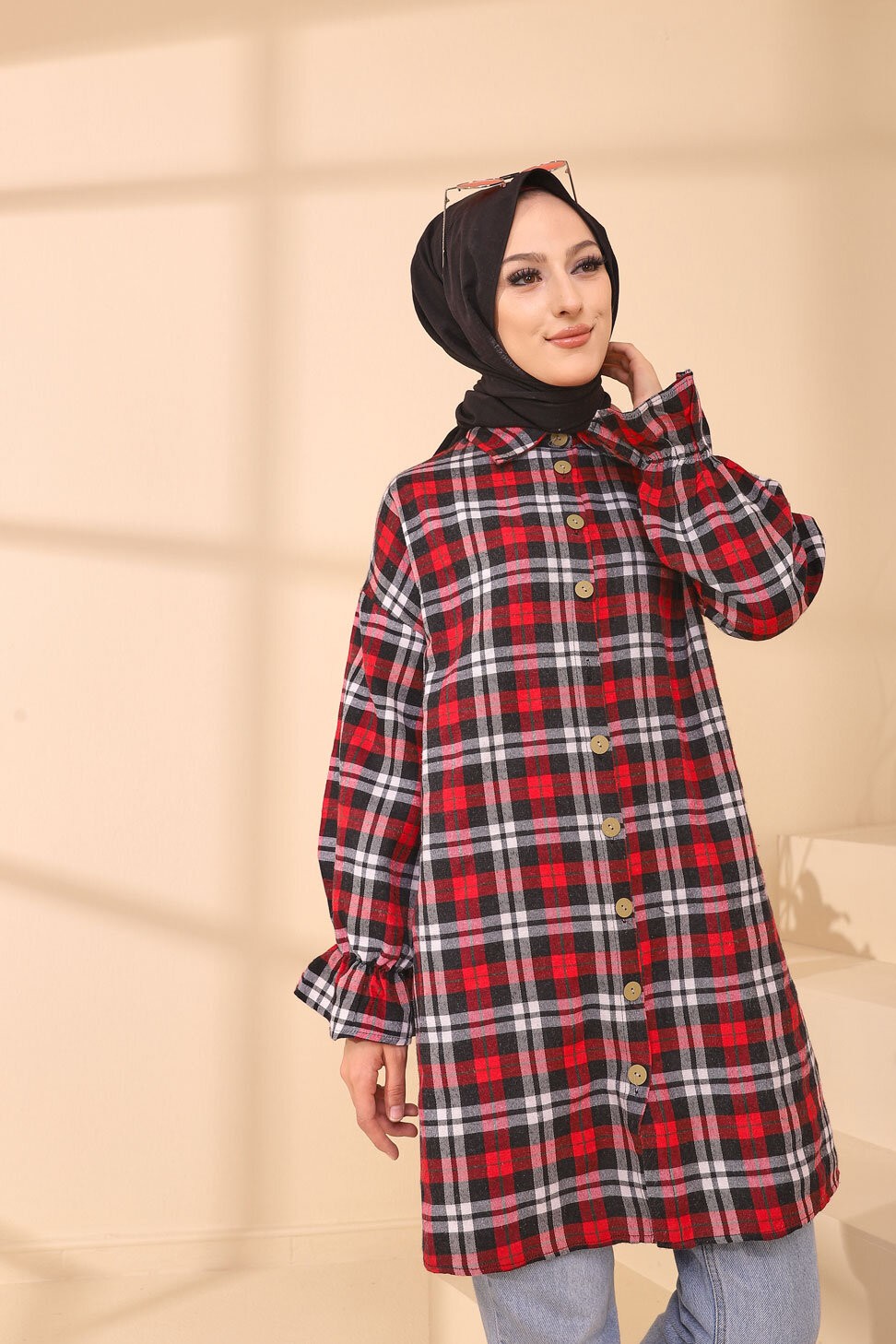 Surchemise ample - Tunique à carreaux (Vêtement Hijab style Musulmane) - Rayures de couleur rouge Vetement & Accessoire