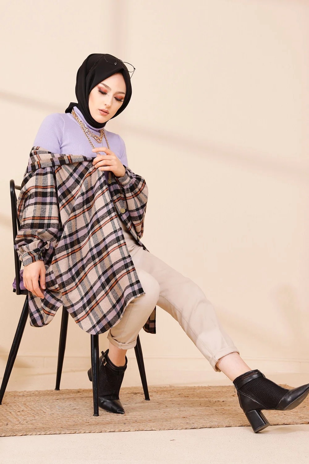 Chemise à carreaux (Boutique en ligne vêtement moderne pour femme musulmane) - Couleur bleu marine - REF. 35127 (24.90 €) - En Promotion à 14.90 €