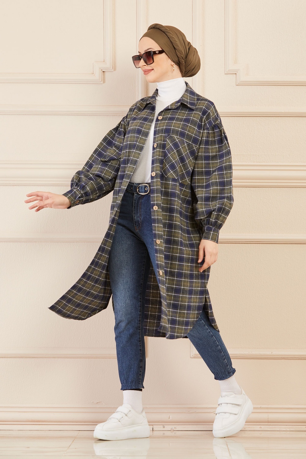 Surchemise oversize (Chemise ample) a carreaux kaki