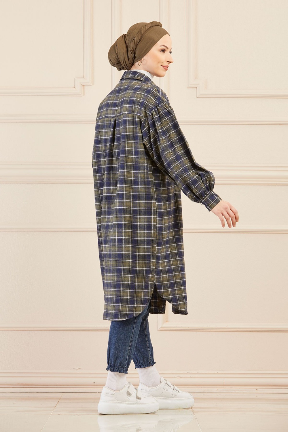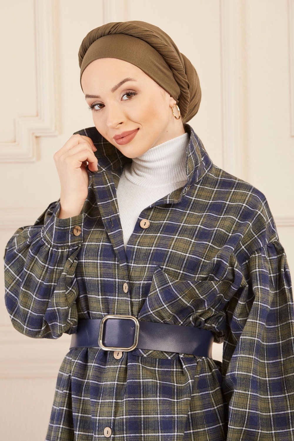 Chemise - Tunique à carreaux (Vêtement hijab pour femme) - Couleur noir et taba - REF. 35819 (19.90 €)