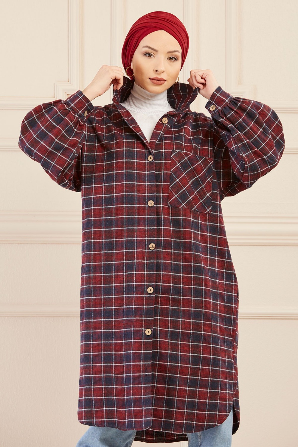 Tunique avec capuche et broderie (Vetement pour femme voilée) - Couleur bordeaux - REF. 36629 (29.90 €)