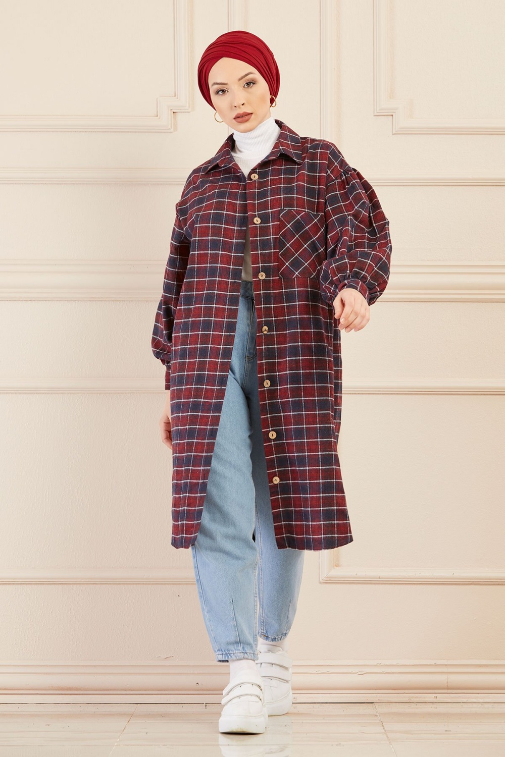 Veste Manteau femme avec ceinture intégrée (Tunique Automne Hiver - Vêtement Hijab Turque en ligne) - Couleur prune - REF. 35329 (19.90 €)