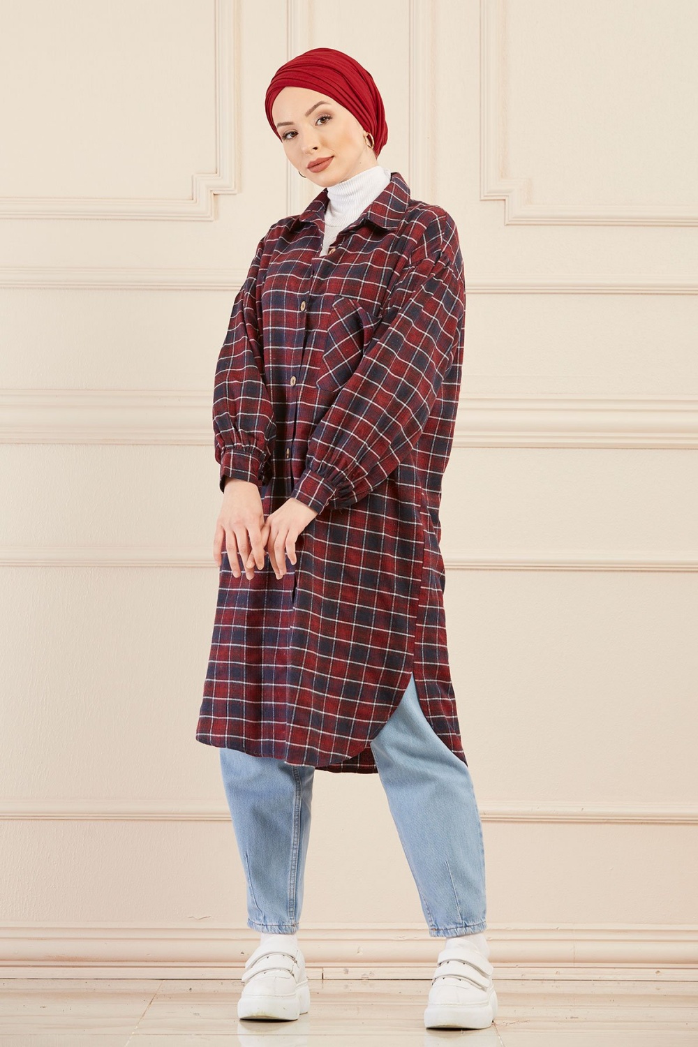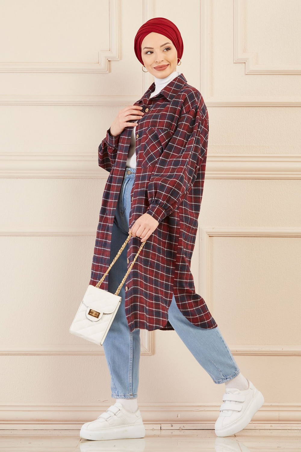 Surchemise oversize à carreaux bordeaux pour femme Vetement & Accessoire
