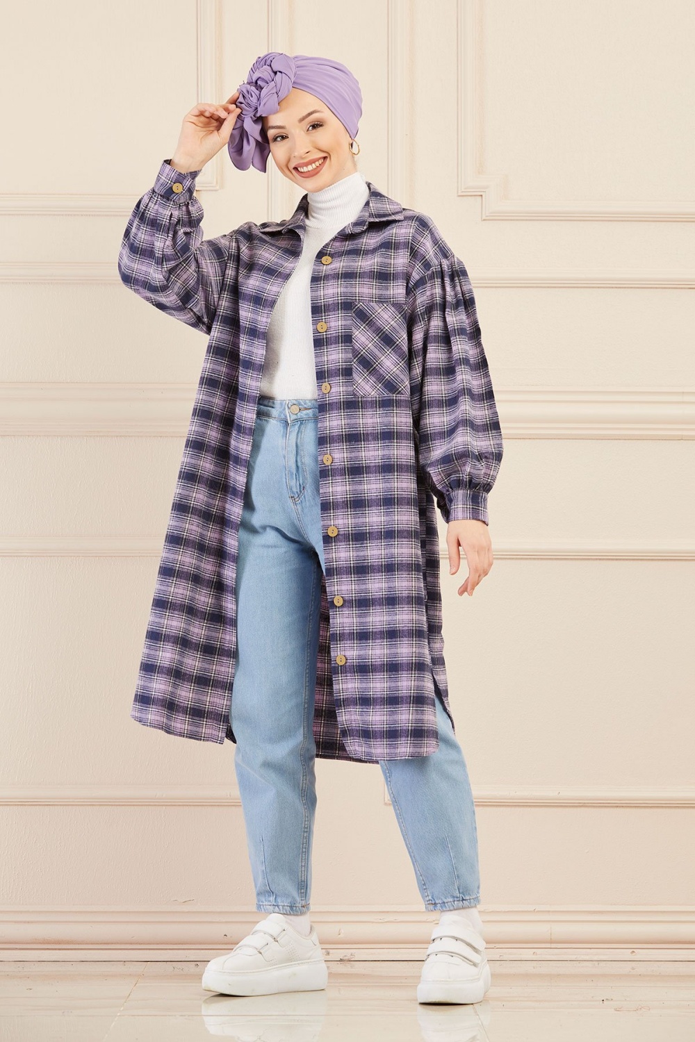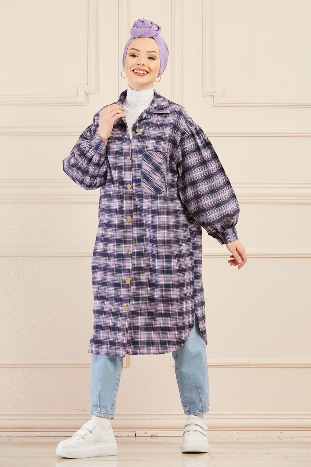 Surchemise oversize à carreaux lilas pour femme Vetement & Accessoire