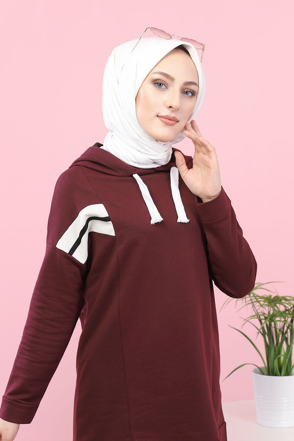 Sweatshirt long avec capuche style moderne décontracté et sport (Vêtement femme musulmane) - Couleur gris foncé - REF. 35365 (19.90 €)