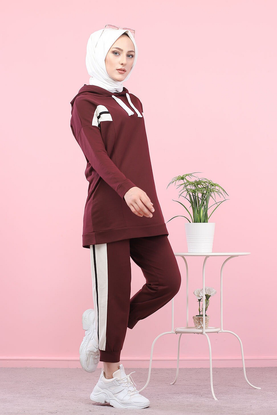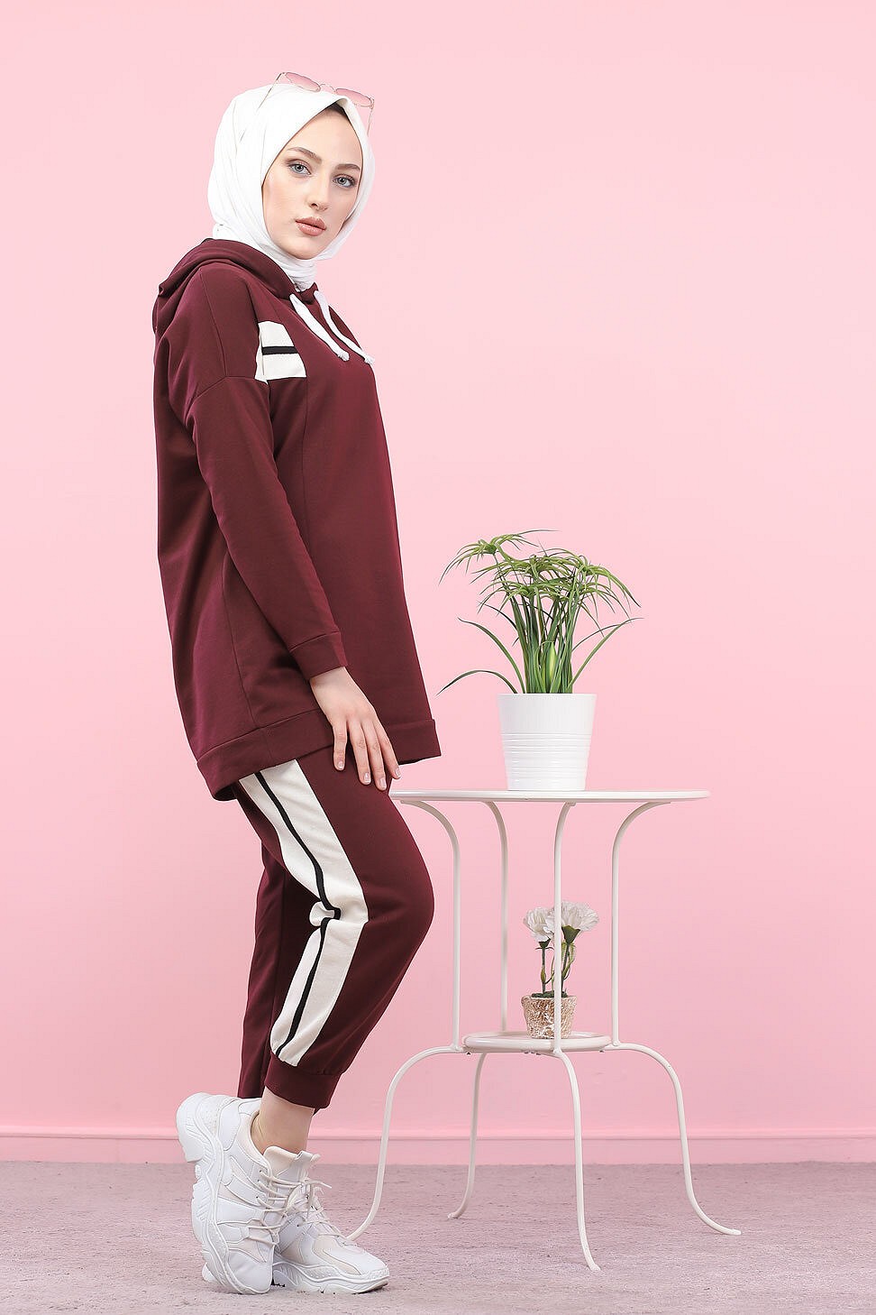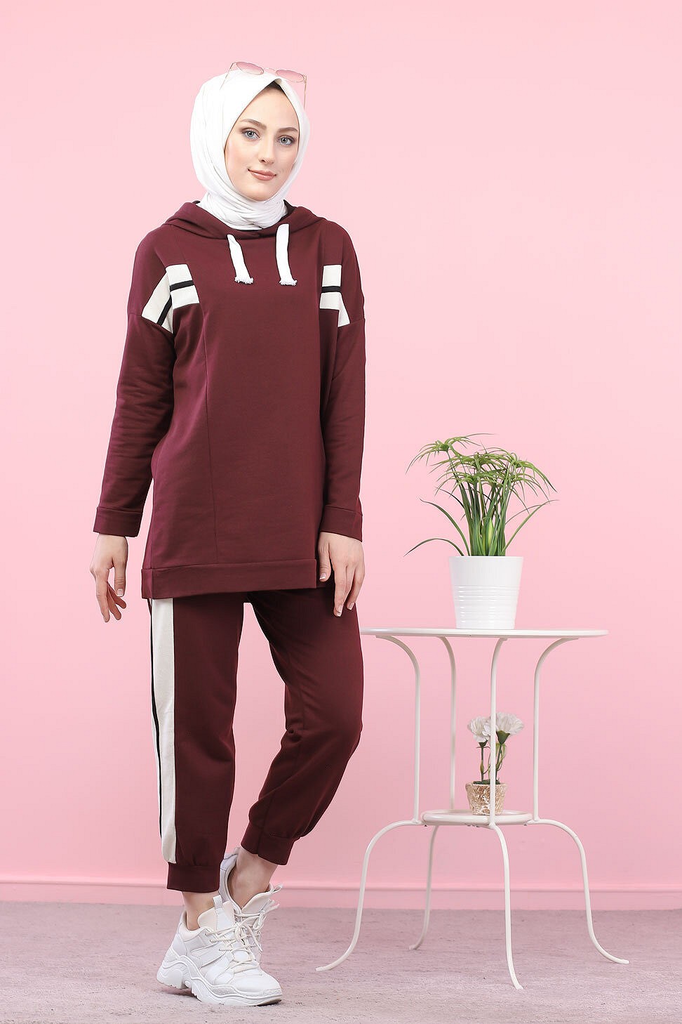 Ensemble survêtement 2 pièces de couleur aubergine - Vêtement moderne et décontracté et sport pour femme - REF. 30320 (25.00 €) - En Promotion à 19.90 €