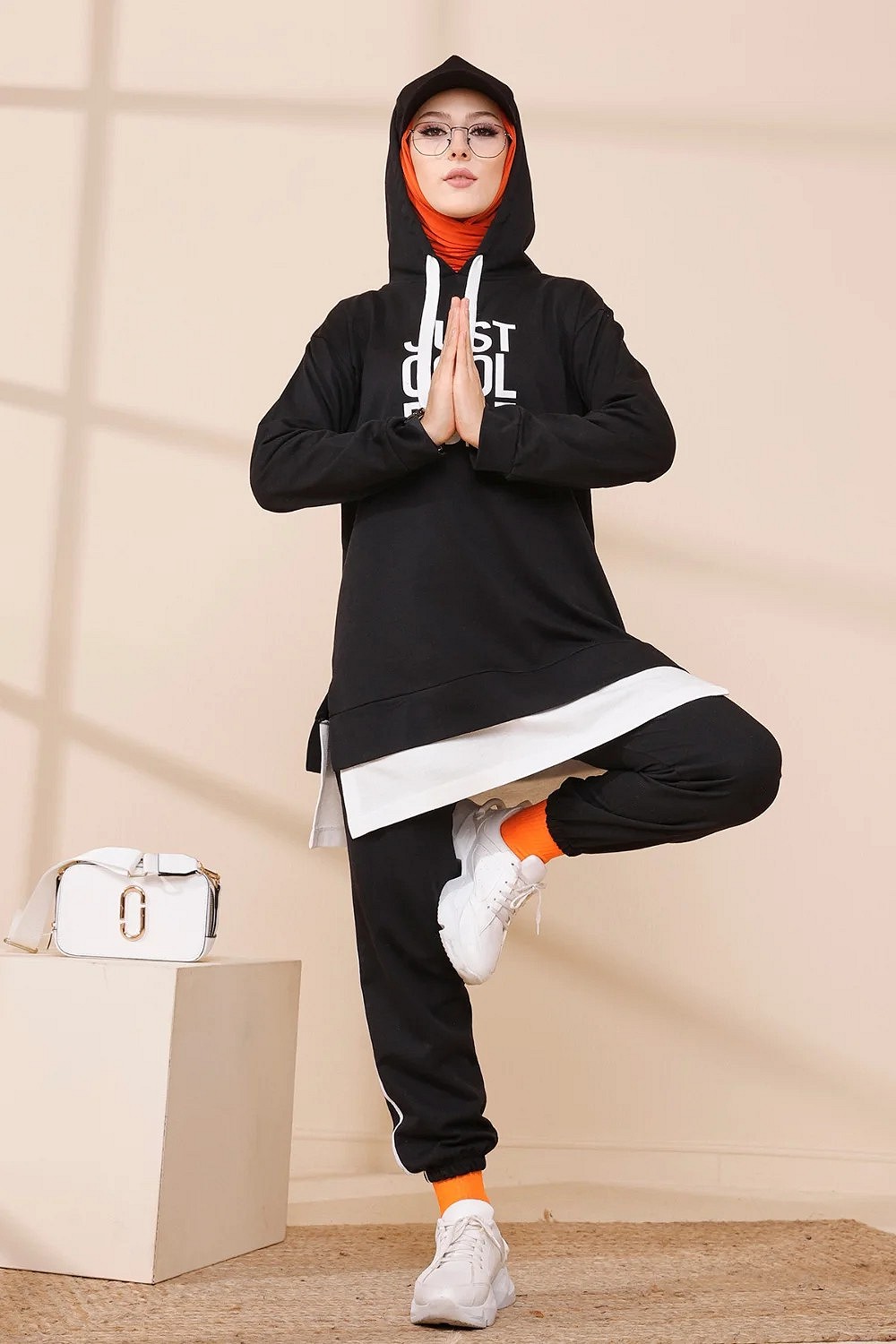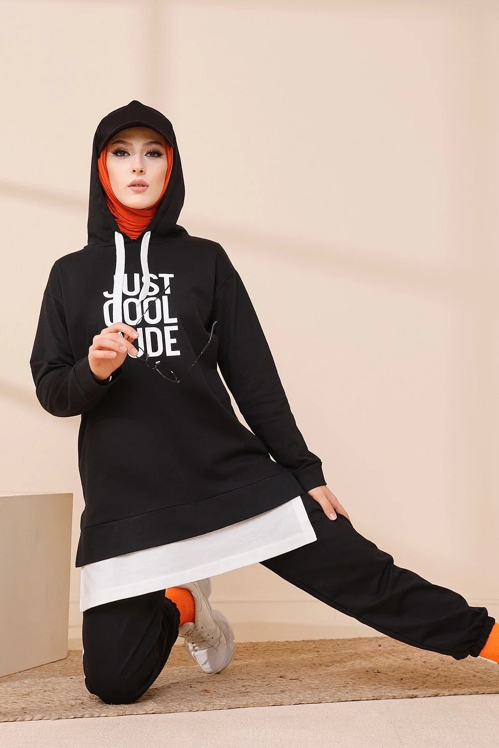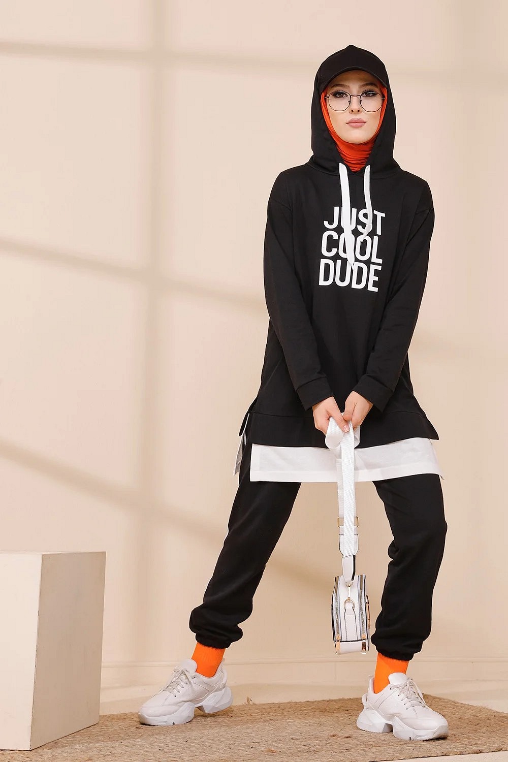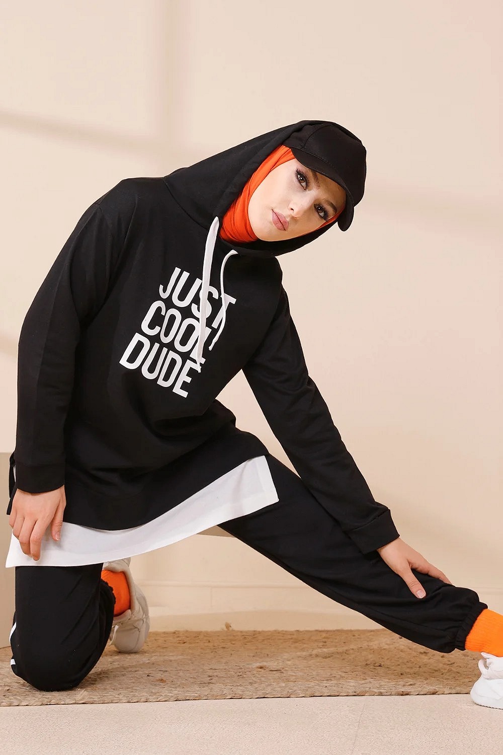 Survêtement avec extension blanche - Ensemble Sweat à capuche imprimé "Just Cool Dud" (Boutique Musulmane Hijab - hidjab - hijeb - turban) - Couleur noir Vetement & Accessoire