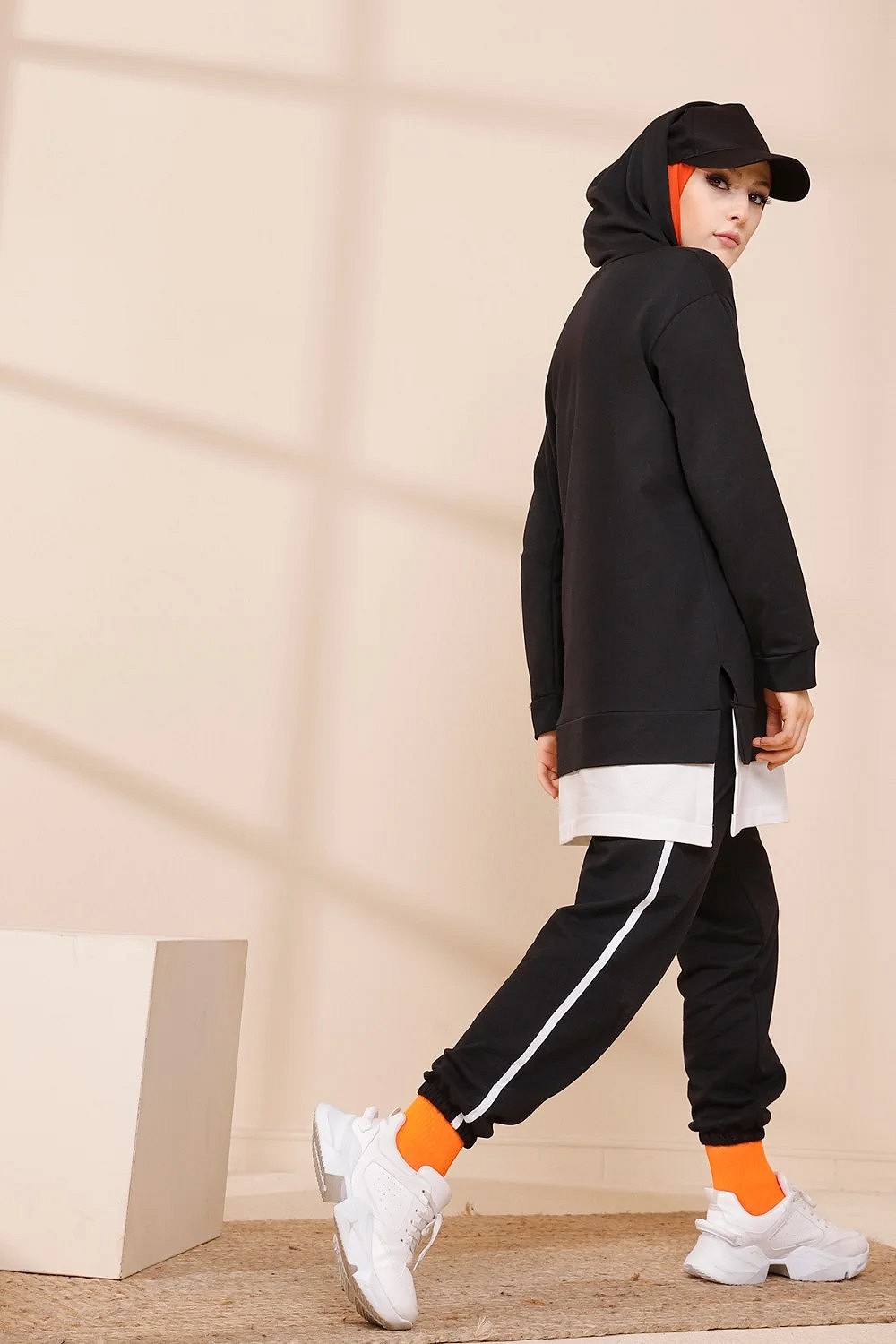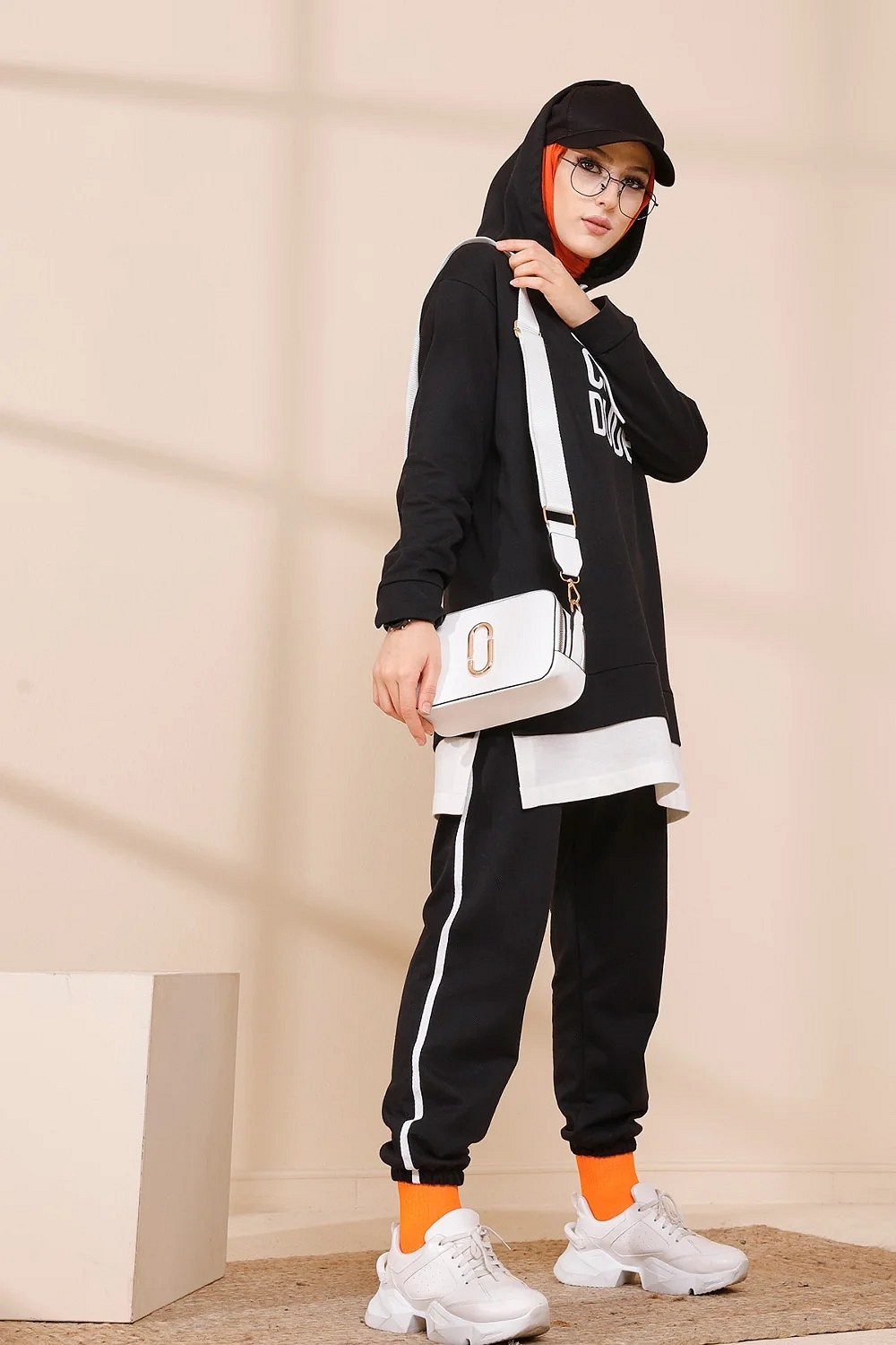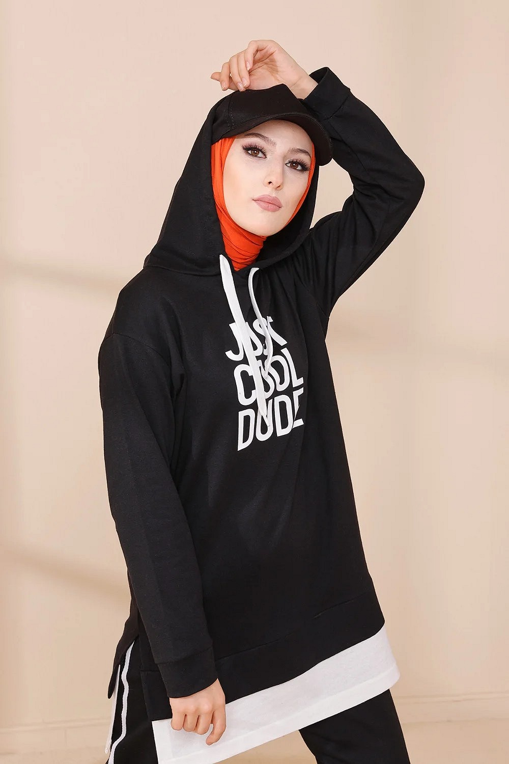 Survetement avec extension blanche - Ensemble Sweat a capuche imprime "Just Cool Dud" (Boutique Musulmane Hijab - hidjab - hijeb - turban) - Couleur noir