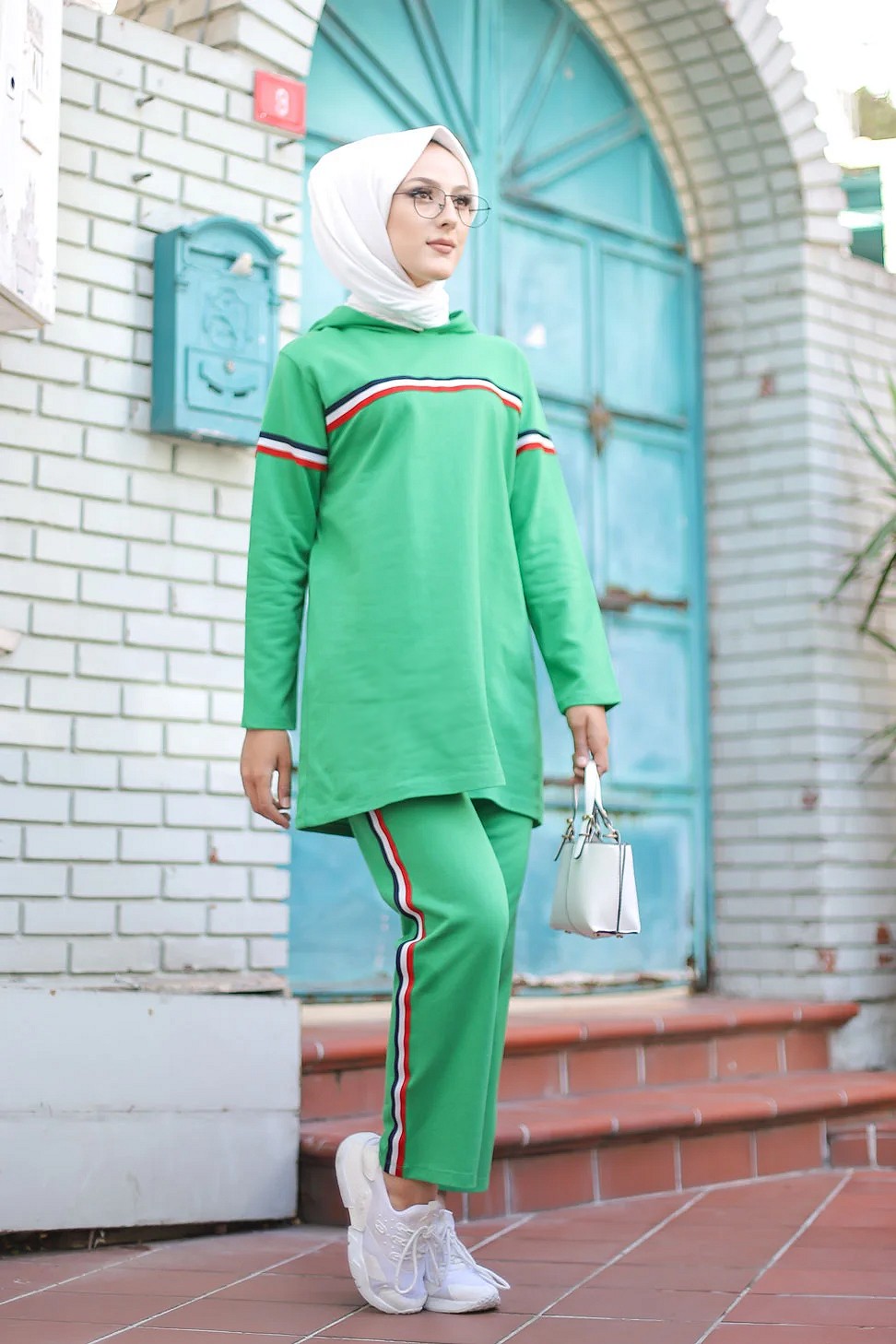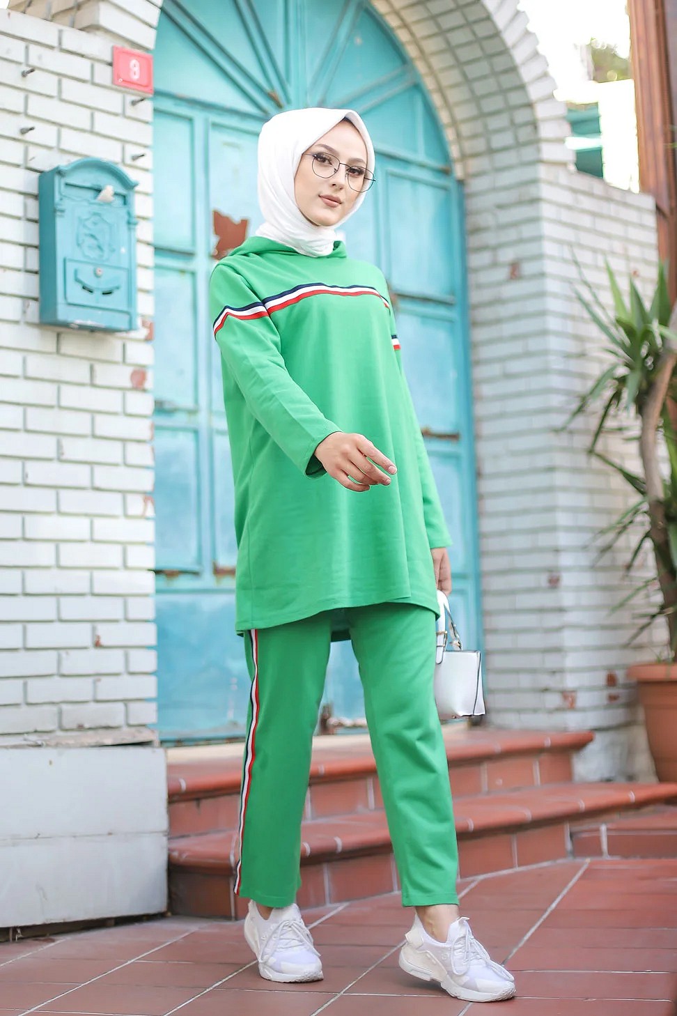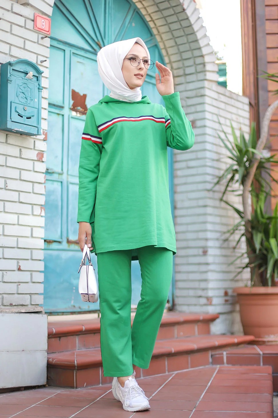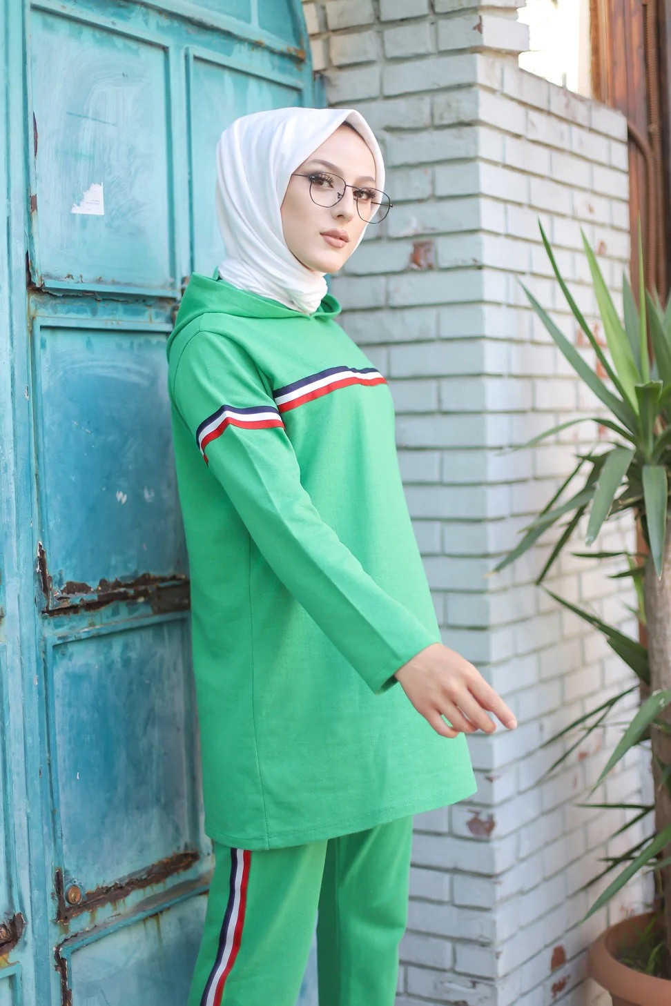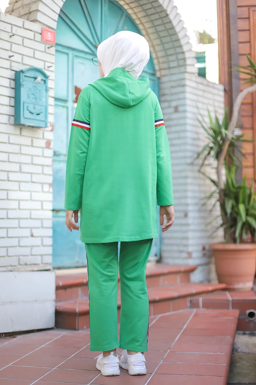 Survêtement avec sweat-shirt à capuche et jogger basique en coton (Hidjab Sport) - Couleur vert Vetement & Accessoire