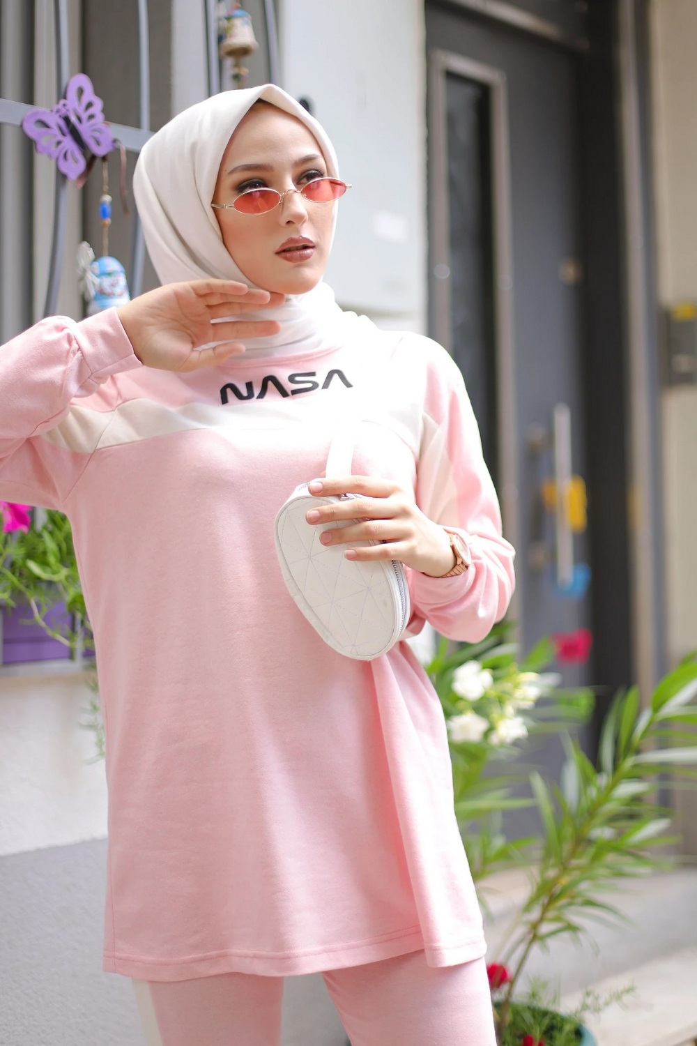Ensemble survêtement brodé "Nasa" pour femme (Tenue de sport pour Hijab - Boutique en ligne) - Couleur anthracite - REF. 36386 (25.00 €)