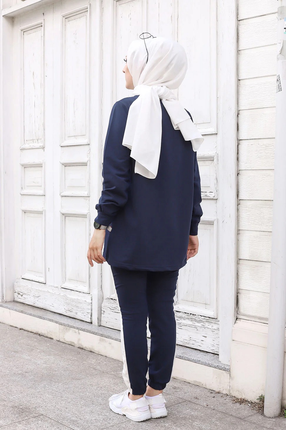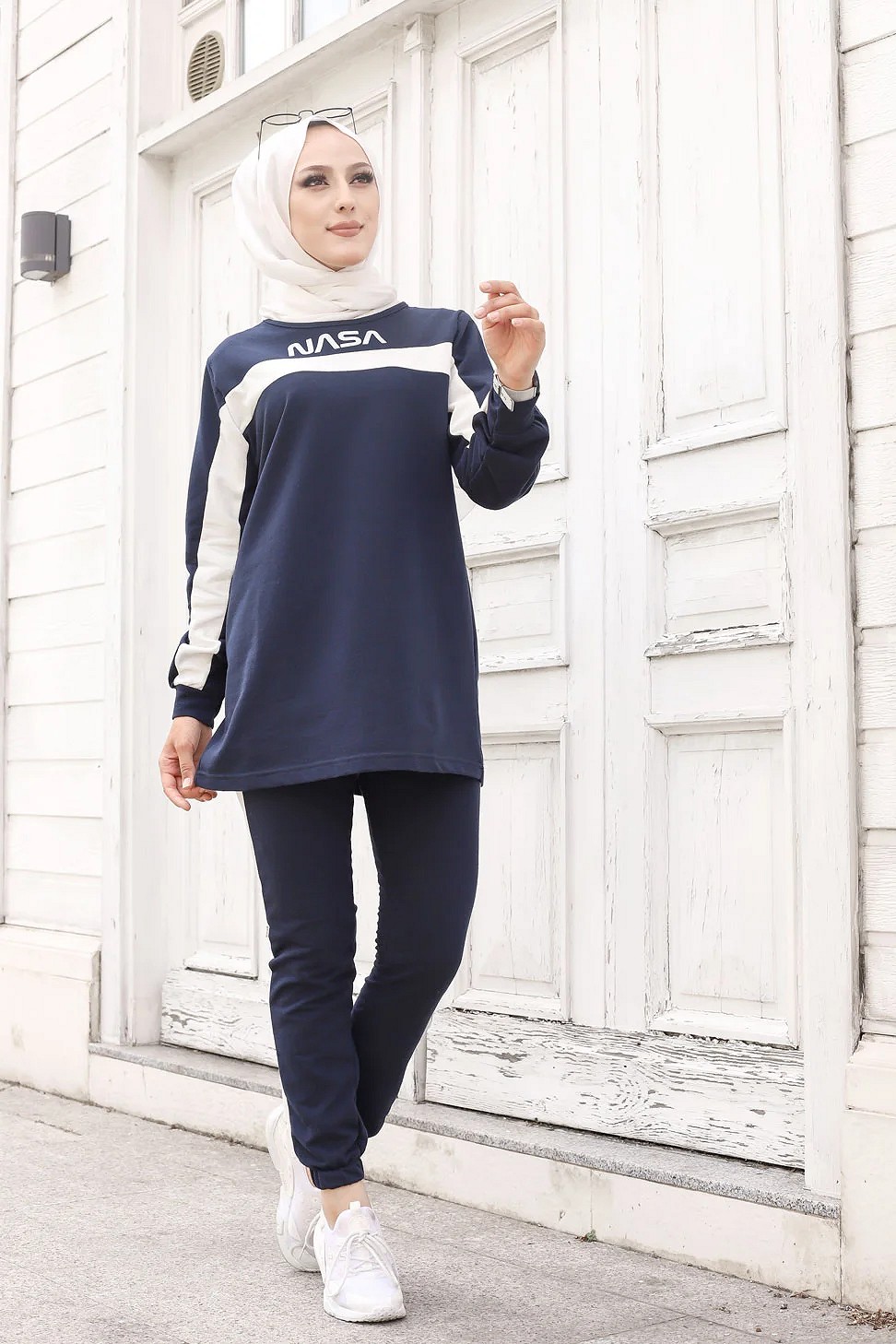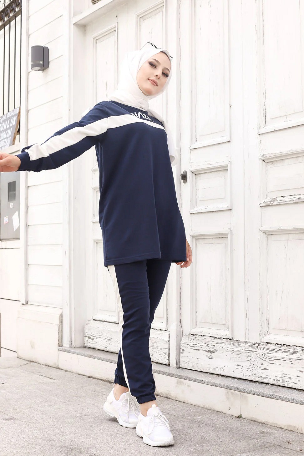 Ensemble survêtement 2 pièces décontracté (Hijab Sport femme musulmane) - Couleur bleu marine - REF. 32290 (29.90 €)