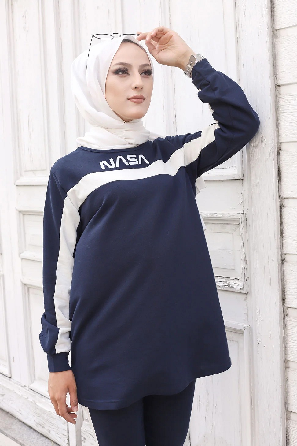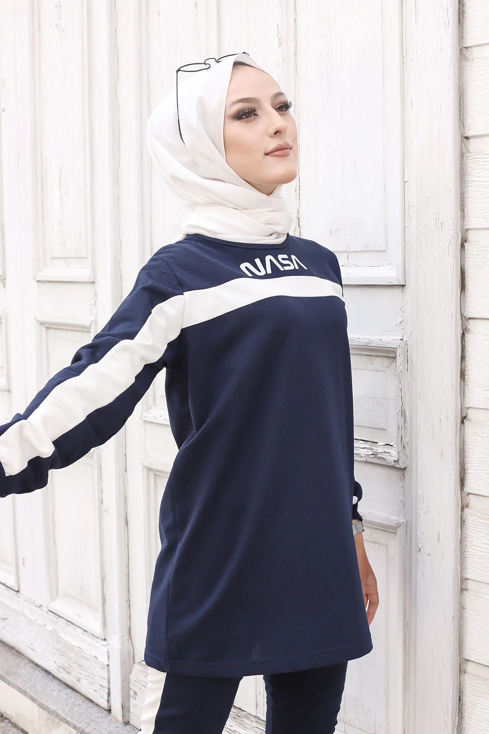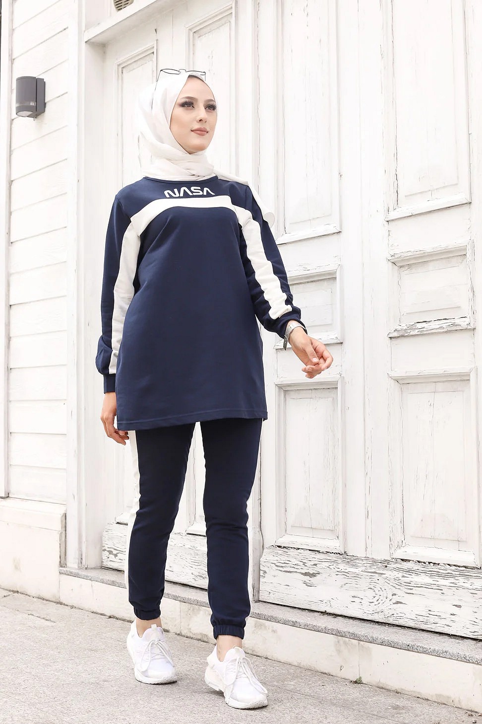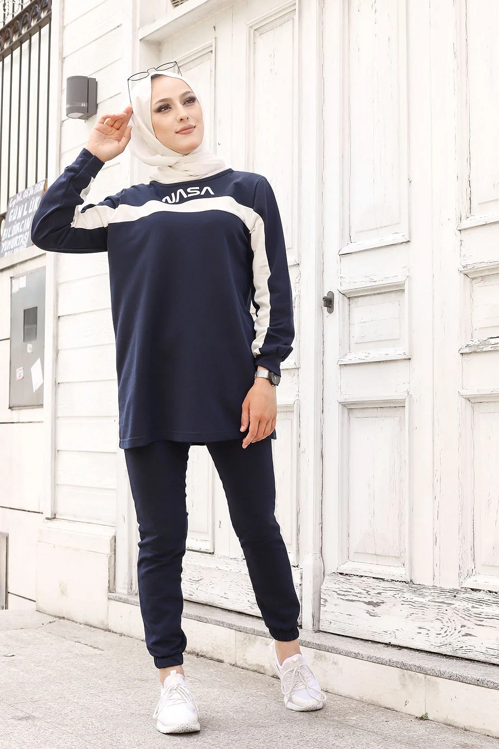 Ensemble survêtement 2 pièces décontracté (Hijab Sport femme musulmane) - Couleur bleu marine - REF. 32290 (29.90 €)