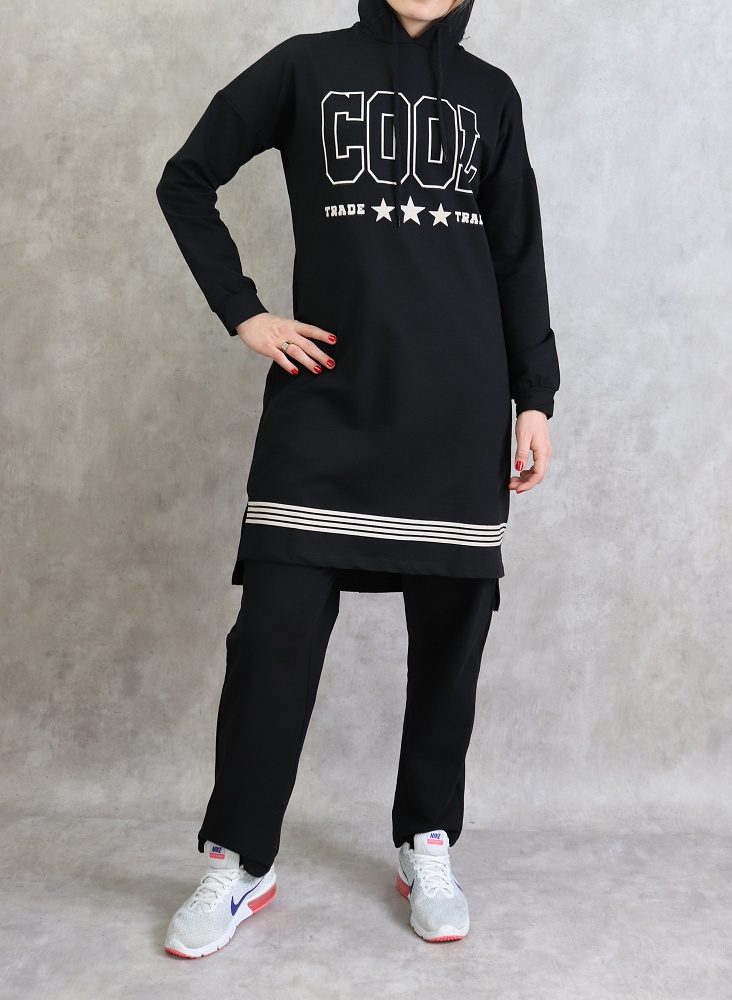 Ensemble survêtement Sportswear - Tenue décontractée et de sport femme musulmane - Sweat-shirts et pantalon jogging - Couleur Noir - REF. 32334 (29.90 €) - En Promotion à 24.90 €