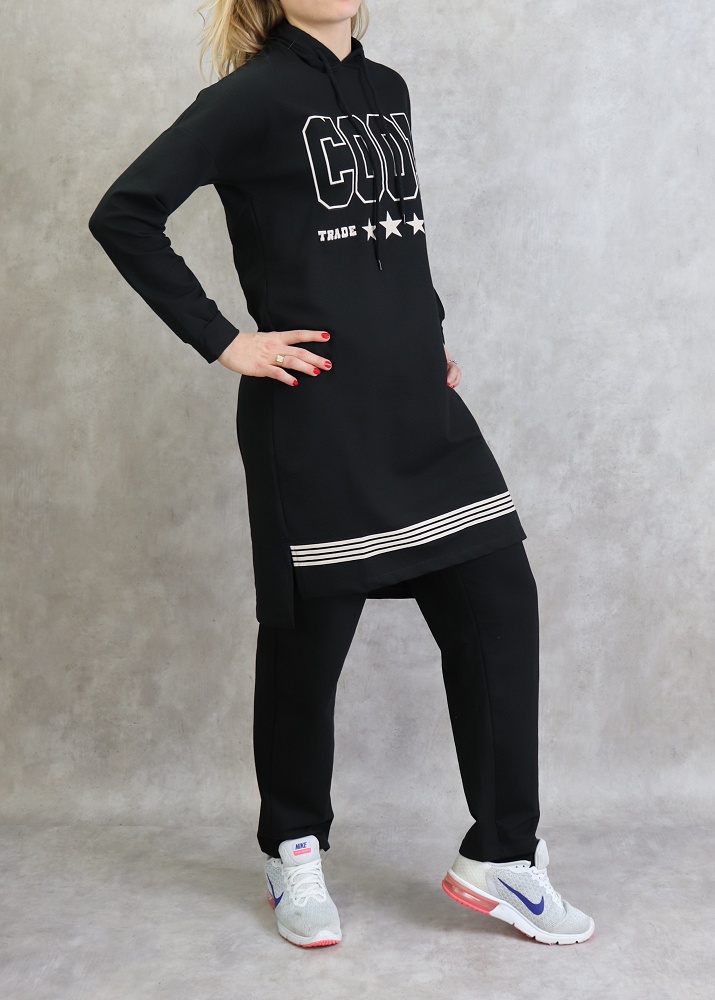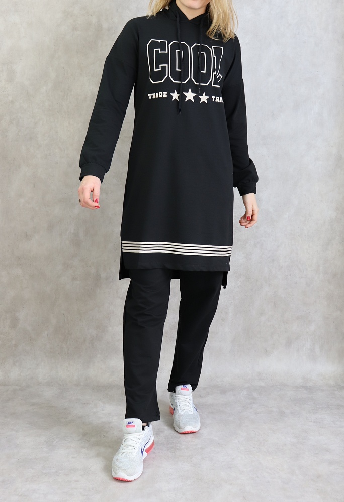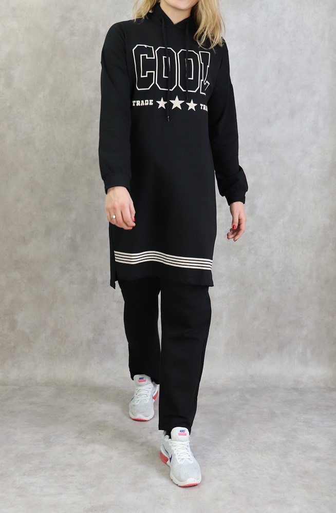 Survetement femme 2 pieces a capuche "COOL" de couleur noir