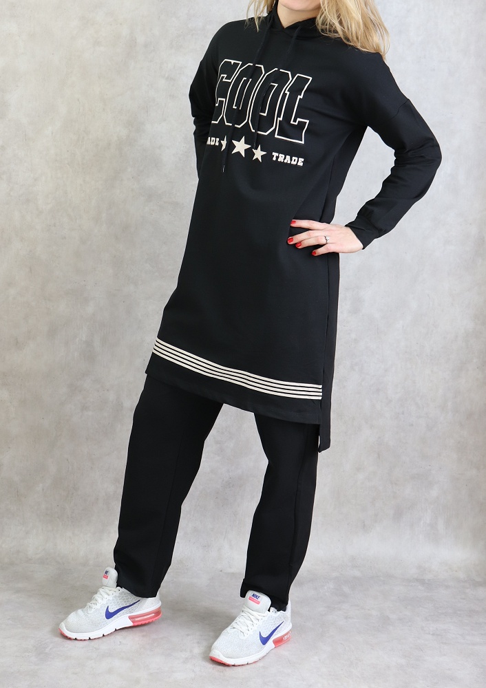 Survêtement femme 2 pièces à capuche "COOL" de couleur noir Vetement & Accessoire
